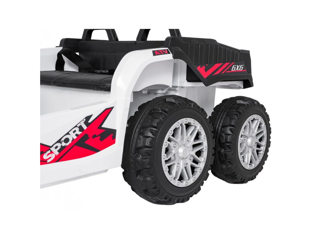Quad Sport TX ATV za otroke je idealna izbira za male pustolovce, ki si želijo vznemirljive in varne vožnje. Zahvaljujoč štirim zmogljivim 35 W motorjem in dvema 12V 7Ah baterijama bodo otroci uživali v dolgih urah zabave. Daljinski upravljalnik z 2,4 GHz krmilnikom staršem omogoča popoln nadzor nad vozilom, varnostni gumb STOP pa vozilo takoj ustavi.