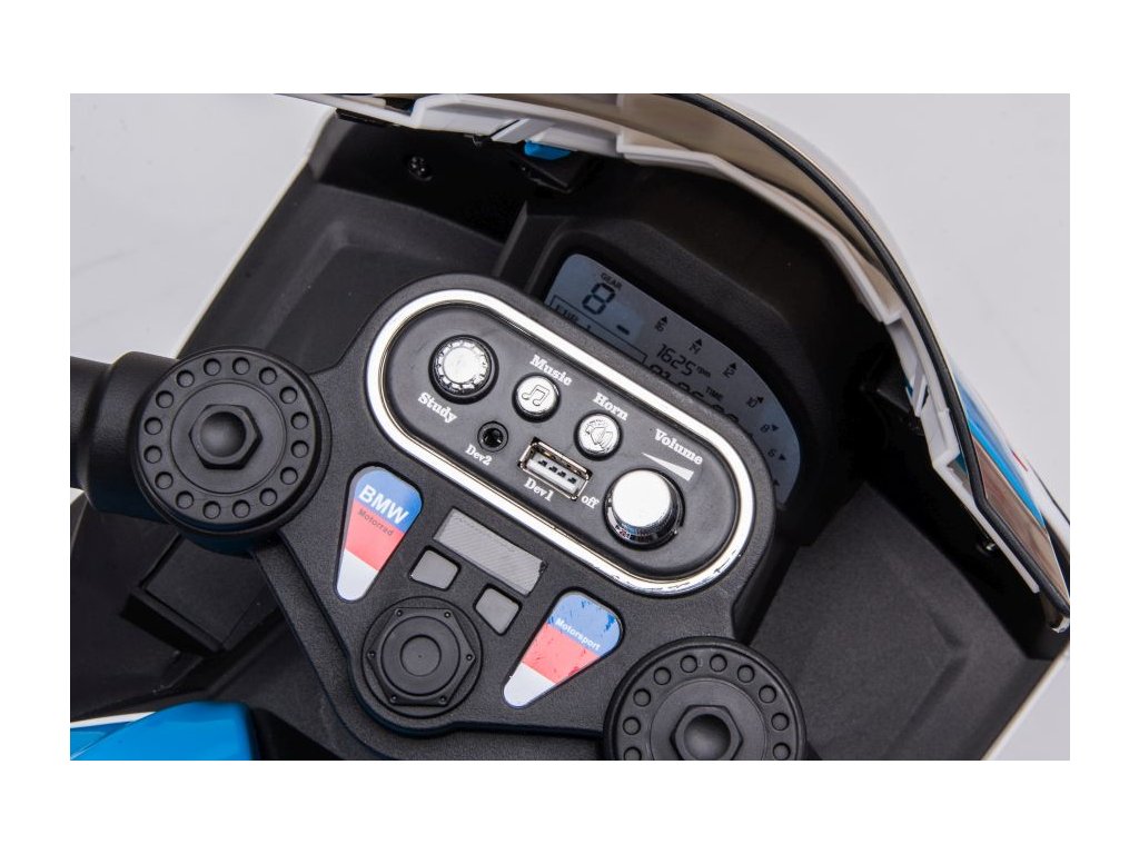 Otroški motor na akumulator z licenco BMW prihaja na kolesih z gumijastim robom in glasbenim panelom z MP3 in USB. Po terenu se lahko peljete s hitrostjo od 3 do 5 km/h.