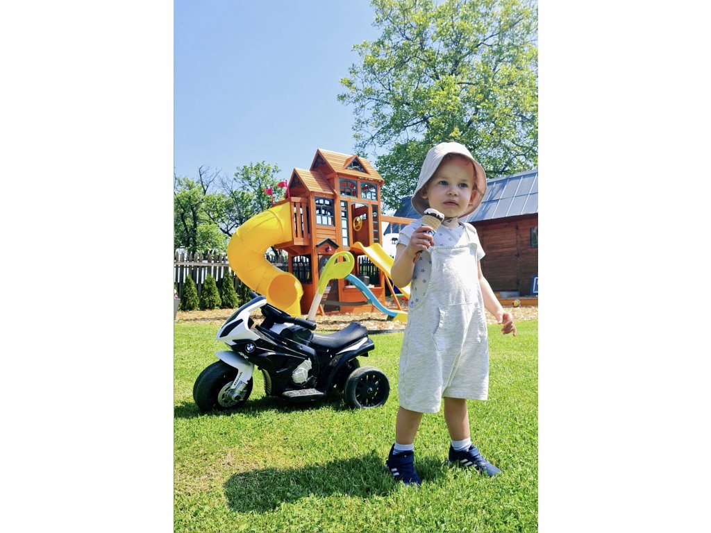 Otroški motor na akumulator BMW S1000RR tricikel črna za majhne dirkače je izdelan iz kakovostne trde plastike. Otroški električni motor pomaga otrokom pri razvijanju vozniških sposobnosti in ravnotežja. Je odličen dodatek za sprehode z družino ali preživljanje časa na vrtu. Sedež motorja je prevlečen z mehkim ekološkim usnjem. Električni motor je opremljen s sprednjimi LED lučmi. Motor ima hitrost 3 km/h in zdrži v delovanju 1 uro. Za varnost otroka skrbi avtomatska zavora, ki se aktivira ob sprostitvi stopalke za plin.