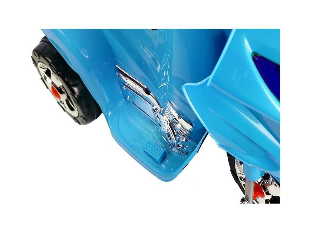 Moderotroški motor na akumulator je opremljen z baterijo 6V4,5Ah in močnim motorjem 18 W. Dvojica teh komponent omogoča doseganje hitrosti okoli 4 km/h, kar bo vsakemu otroku zagotovilo odlično zabavo. In kar je še pomembneje: ta model ima dve prestavi - naprej in nazaj, kar izrazito olajša zabavo. Dodatni elementi, ki so glavne prednosti tegamotorja, so: prozorna kapuca, stranska ogledala in LED osvetlitev, ki povečujejo vidljivost otroka na cesti. Na zadnji strani je odprt prtljažnik, v katerem lahko mali voznik hrani svoje zaklade. Nepogrešljiv element pa je hupa in glasbena tipka na področju volana.