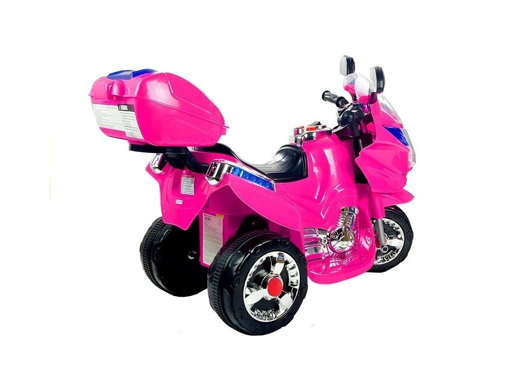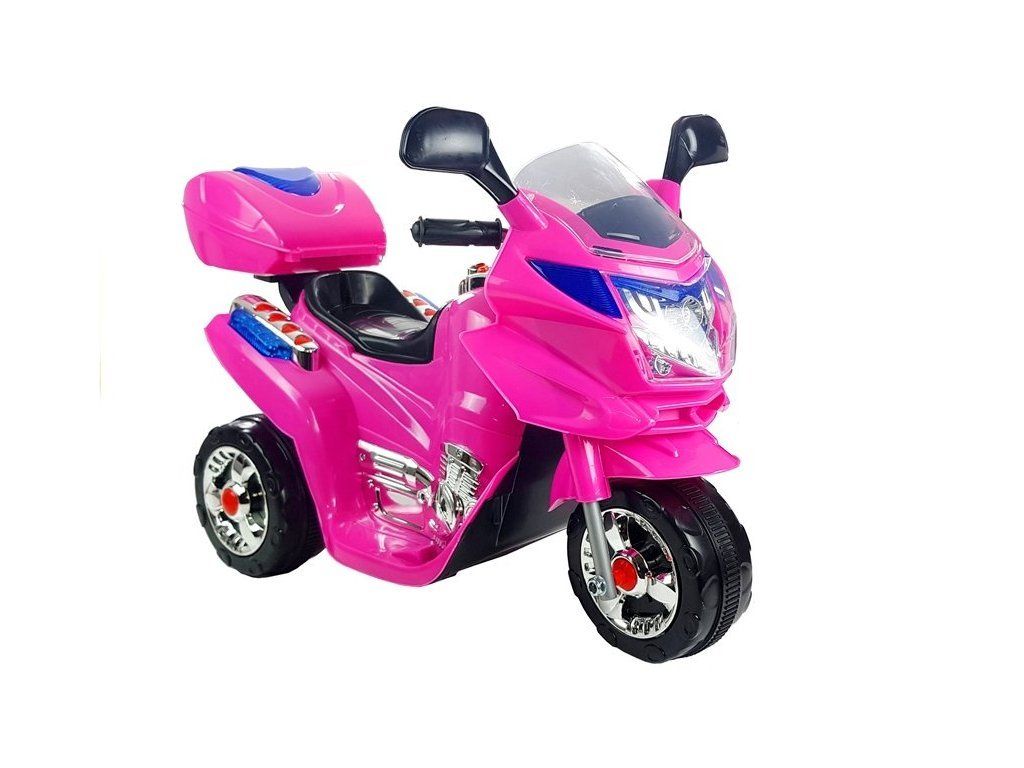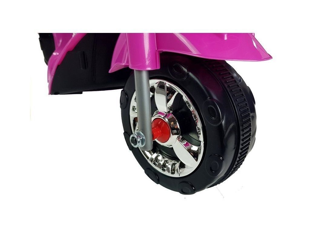 Roza otroški motor na akumulator je opremljen z baterijo 6V4,5Ah in močnim motorjem 18 W. Dvojec teh komponent vam omogoča doseči hitrost okoli 4 km/h, kar bo vsakemu otroku prineslo veliko zabave. In kar je še več: ta model ima dve prestavi - naprej in nazaj, kar zabavo močno olajša. Drugi elementi, ki so glavne prednosti tega motorja, so: prosojna kapota, stranska ogledala in LED osvetlitev, ki povečujejo vidljivost otroka na cesti. Na zadnji strani je prtljažni prostor, kjer mali voznik lahko drži svoje zaklade. Nezanemarljiv element sta sirena in glasbena tipka na volanu.