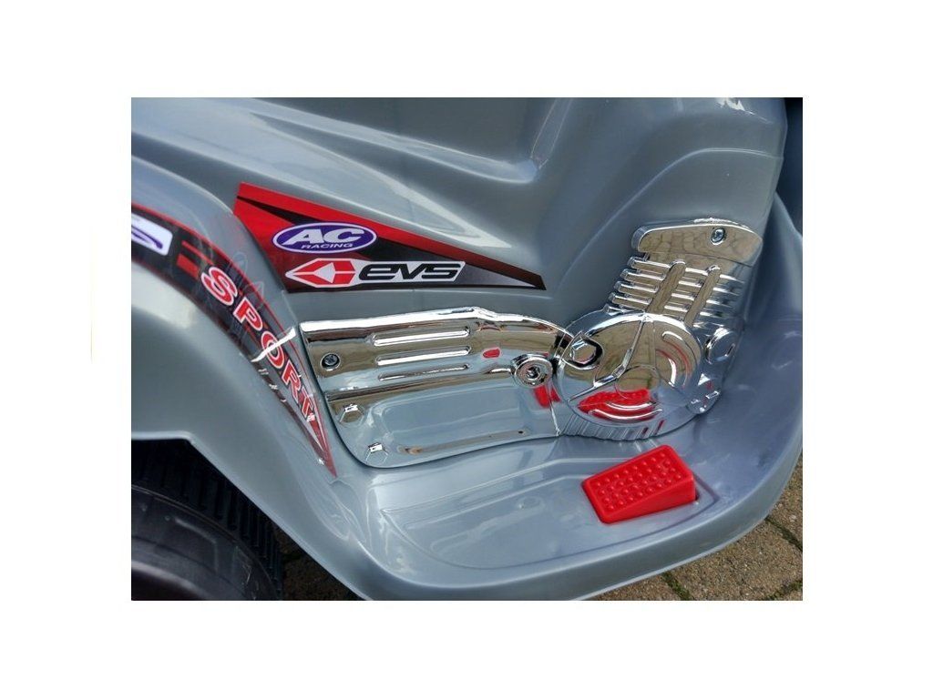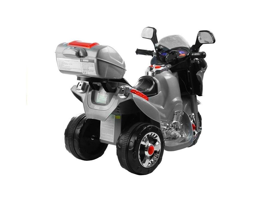 Srebrn otroški motor na akumulator bo zagotovo narisal nasmeh na obraz vsakega otroka, popestril sprehode in čas, preživet na prostem. Igra z motorjem bo pozitivno vplivala na otrokov razvoj, na učenje samostojne ocene hitrosti in razdalje ter na izboljšanje motoričnih sposobnosti, kar je zelo pomembno v zgodnjem življenjskem obdobju. Konstrukcija s tremi kolesi je tudi zelo pomembna rešitev, ki otrokom olajša težave z ohranjanjem ravnotežja pri vožnji.