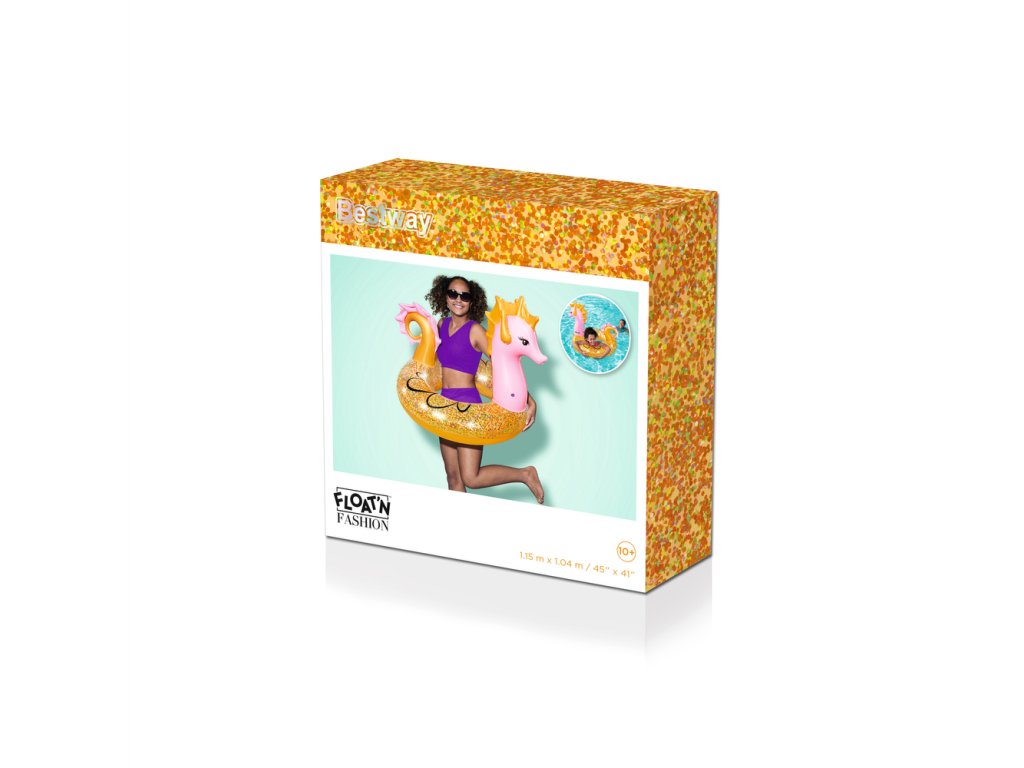 Otroški napihljiv obroč morski konjiček Bestway 36305 je izdelan iz trpežnega PVC materiala, odpornega proti poškodbam, in je namenjen otrokom od 10. leta starosti.