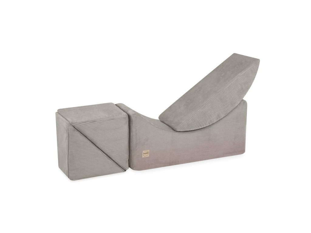 Spoznajte ležalnik (chaise longue) – popolna kombinacija udobja in sloga, ki jo bodo vzljubili tako malčki kot starši! Zasnovan s poudarkom na udobju, ta žametni ležalnik je idealen prostor za počitek, igro in dremež. Njena edinstvena modularna zasnova omogoča prilagajanje oblike stola glede na vaše potrebe – lahko jo uporabite kot klasično ležalno blazino, mehak bralni stol ali celo kot osnovo za ustvarjalne igre.
