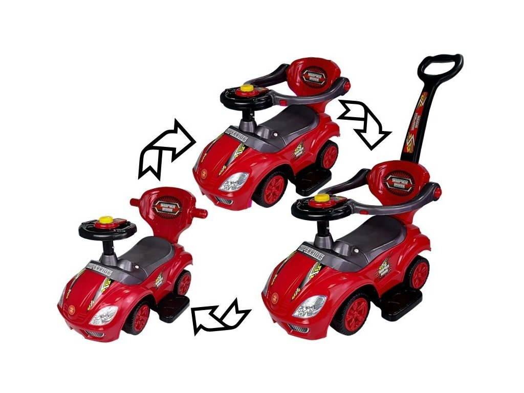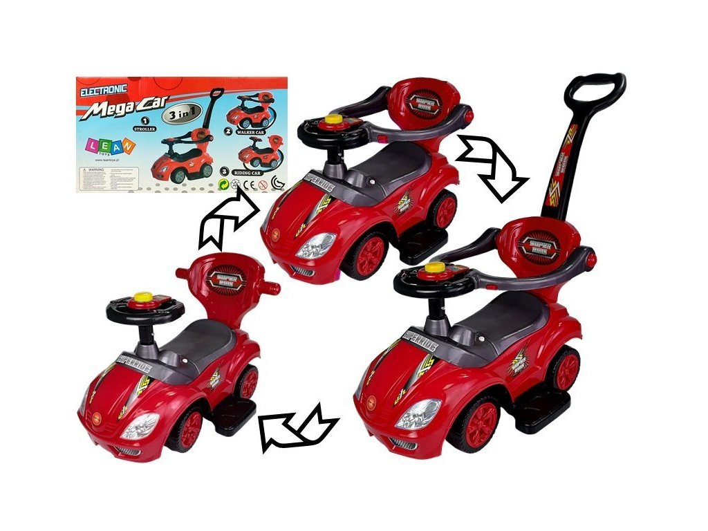 Otroški poganjalec 3v1 Mega Car rdeč.