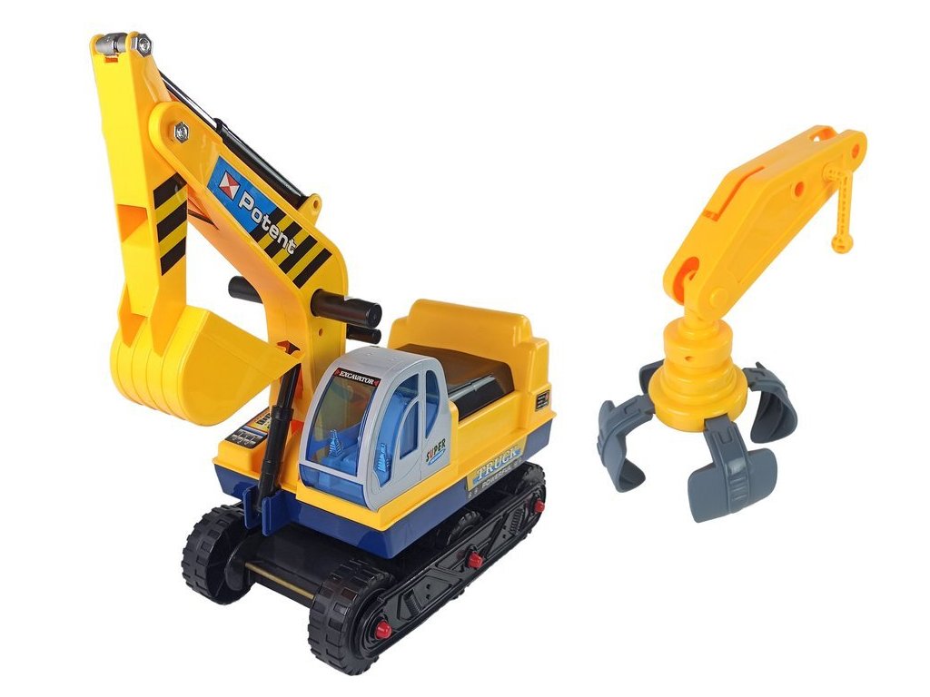 Otroški poganjalec bager s premično roko rumen