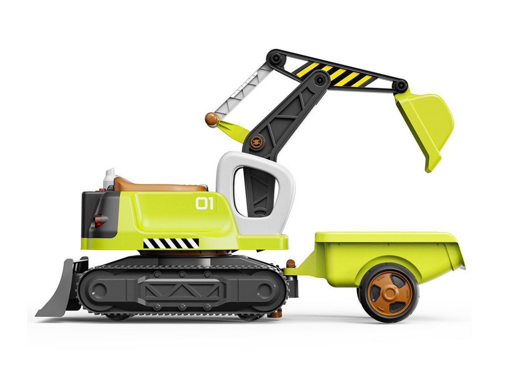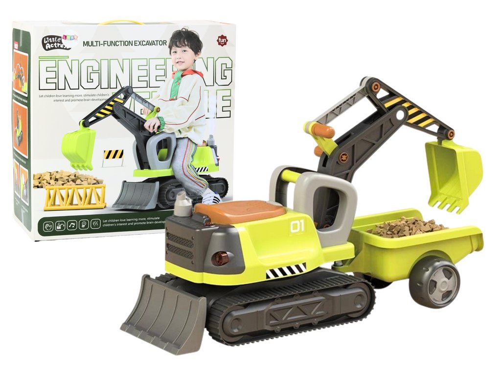 Otroški poganjalec bager s prikolico, luči, zvoki, dim zelena