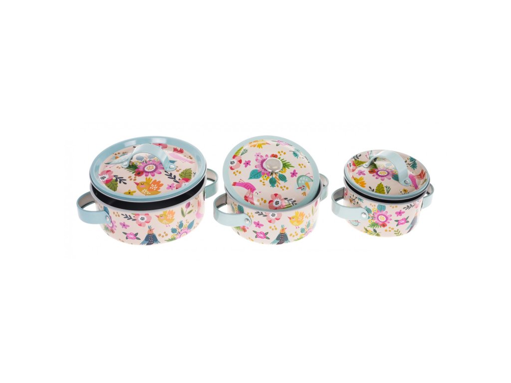 Kvalitetno izdelan otroški set aluminijastih loncev in kuhinjskih dodatkov je primeren za otroke od 3. leta starosti. Set vsebuje 10 kosov, kot so lonci s pokrovi, kuhinjski pripomočki in kuhinjska rokavica.
