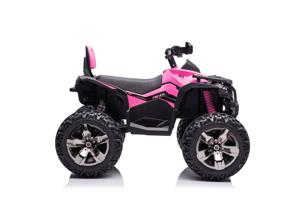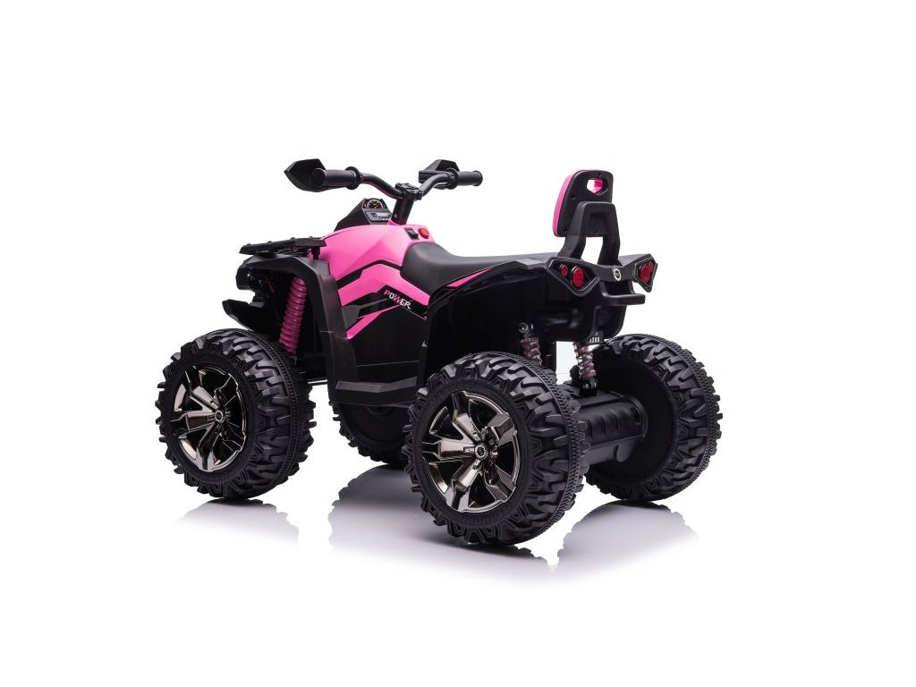 Otroški štirikolesnik na akumulator ATV Power 4x4 roza ima baterijo s kapaciteto 12V 10Ah in štiri motorje z močjo 45W, kar pomeni, da ima štirikolesnik pogon 4x4. Za udobno vožnjo poskrbijo penasta EVA kolesa in sedež, ki je izdelan iz ekološkega usnja.