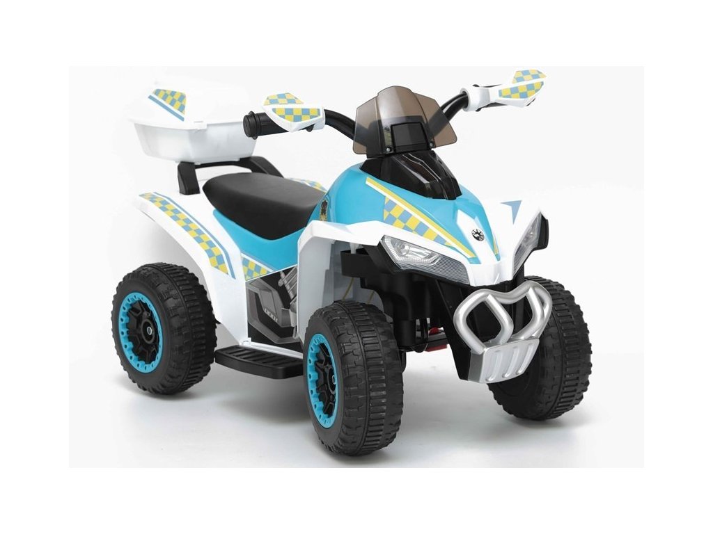 Štirikolesnik se počasi in postopoma ustavi, ko otrok umakne nogo s pedala za plin, zato se mu ni treba skrbeti za zavoro in se ni treba bati "sunka" pri ustavljanju. Električni štirikolesnik je primeren za otroke od 1,5 do 3 let. Dimenzije štirikolesnika so 78,5 x 40,5 x 46 cm.