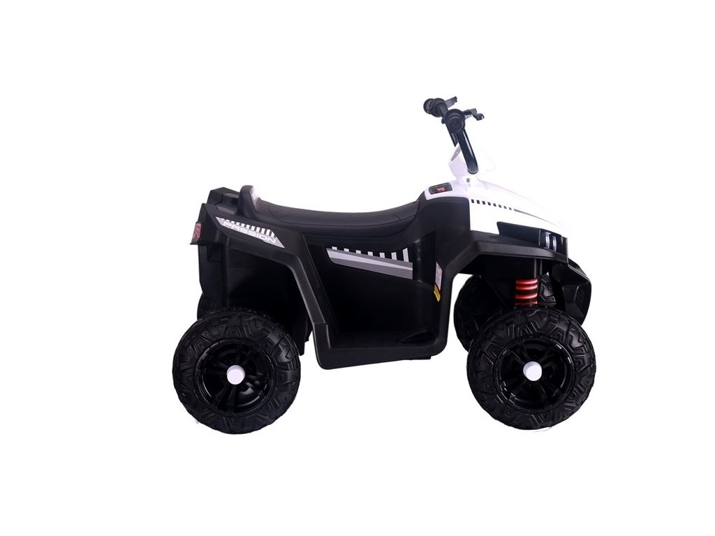 Otroški štirikolesnik na akumulator S601 prinaša veliko zabave, ne le malim otrokom, ampak tudi staršem. Električni štirikolesnik z dodatki v črni barvi je napajan z baterijo 6V 4,5Ah in 2 zmogljivima električnima motorjema 35W. Zahvaljujoč ergonomski zasnovi se bo otrok počutil, kot da je v pravem vozilu.