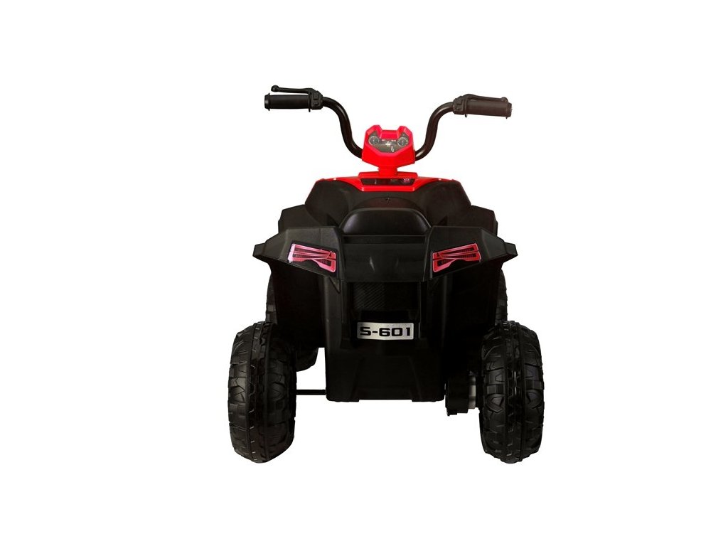 Otroški štirikolesnik na akumulator S601 prinaša obilo zabave, ne le za majhne otroke, ampak tudi za starše. Električni štirikolesnik s črnimi dodatki je napajan z baterijo 6V 4,5Ah in 2 zmogljivima elektromotorjema 35W. Zahvaljujoč ergonomski zasnovi se bo otrok počutil kot v pravem vozilu.