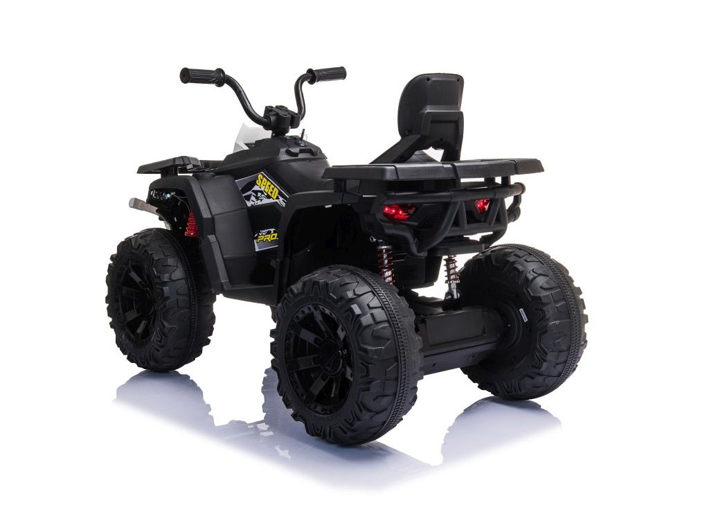 Štirikolesnik ima sedalo iz ekološkega usnja in pena EVA kolesa, kar izboljša otrokovo vožnjo. Velika prednost štirikolesnika so sprednje in zadnje luči. Za varnost poskrbi avtomatska zavora, ki se aktivira ob sprostitvi stopalke za plin.