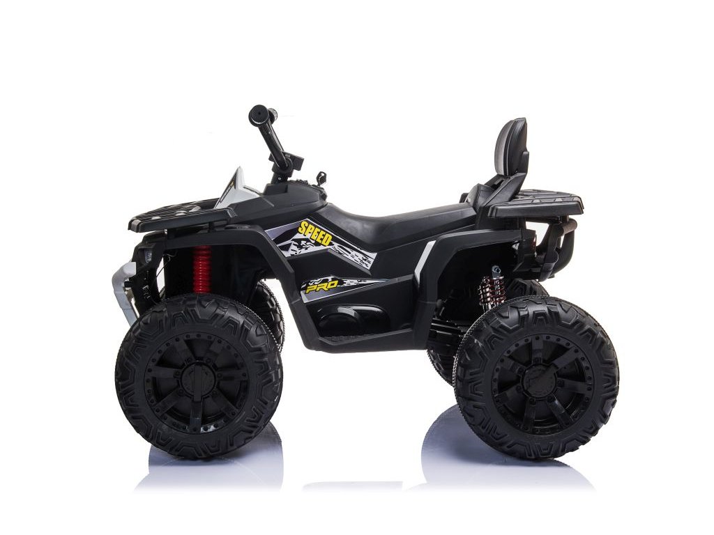 Otroški štirikolesnik na akumulator SpeedPro bel je opremljen z dvema motorjema z močjo 200 W in dvema baterijama s kapaciteto 12 V 4,5 Ah. Štirikolesnik ima avtomatski menjalnik in gumb, ki omogoča preklapljanje med višjo in nižjo hitrostjo. Hitrost štirikolesnika je v razponu od 3 do 8 km/h.