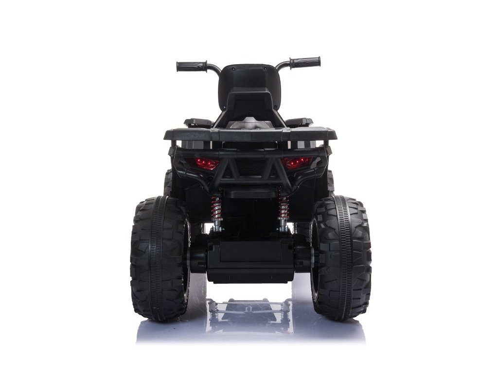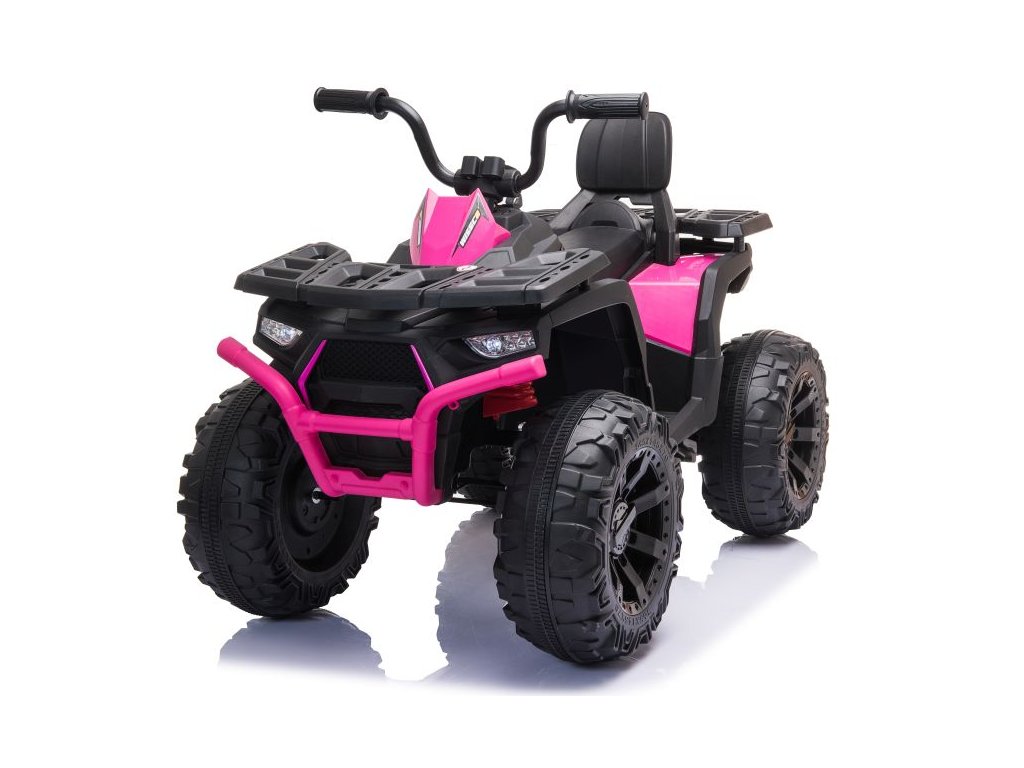 Štirikolesnik ima sedalo iz ekološkega usnja in penasta EVA kolesa, kar otroku zagotavlja udobno vožnjo. Velika prednost štirikolesnika so sprednje in zadnje luči. Za varnost poskrbi samodejna zavora, ki se aktivira ob spuščanju plinskega pedala.