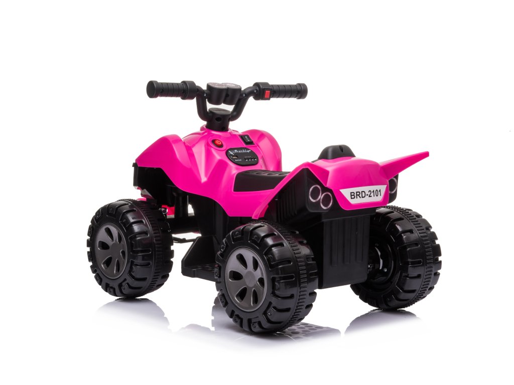 Otroški štirikolesnik na akumulator The Fastest roza za manj zahtevne voznike je namenjen otrokom z nosilnostjo do 30 kg. Upravljanje poteka s pomočjo gumba na ročaju.
