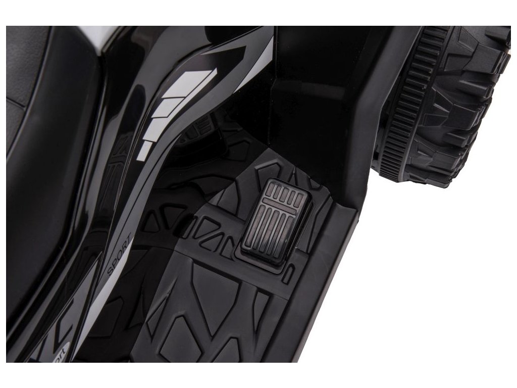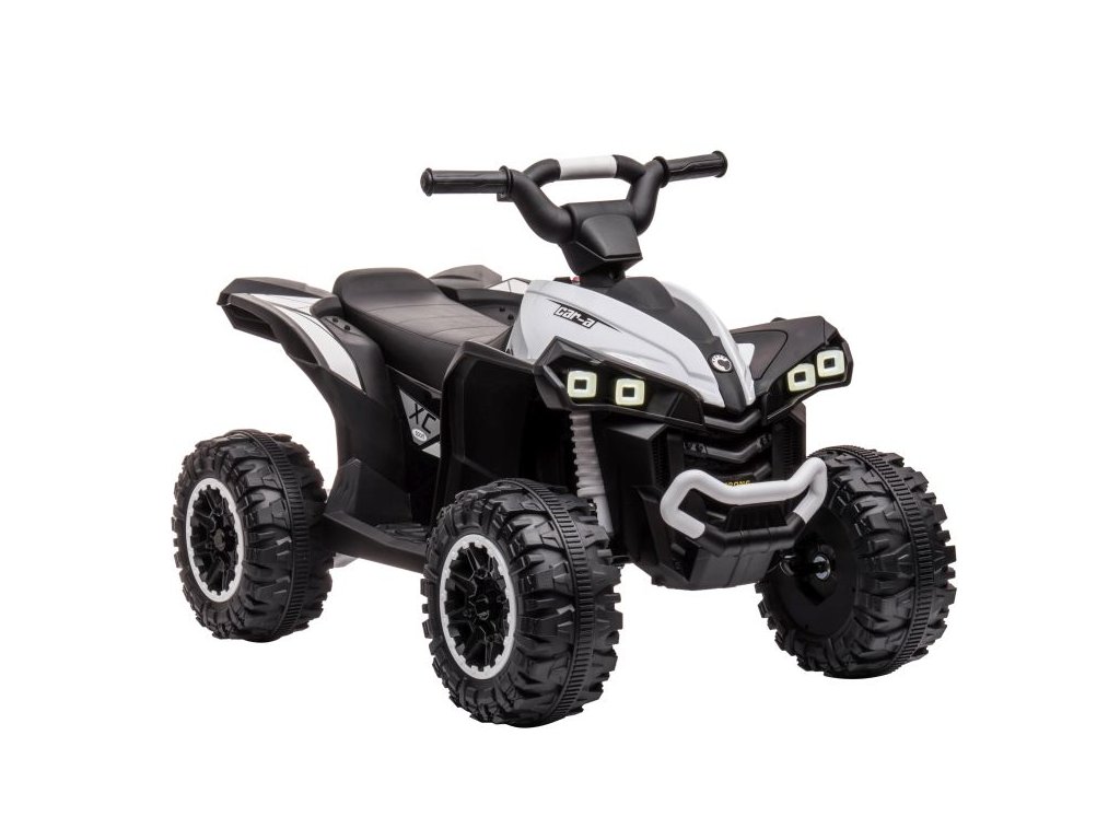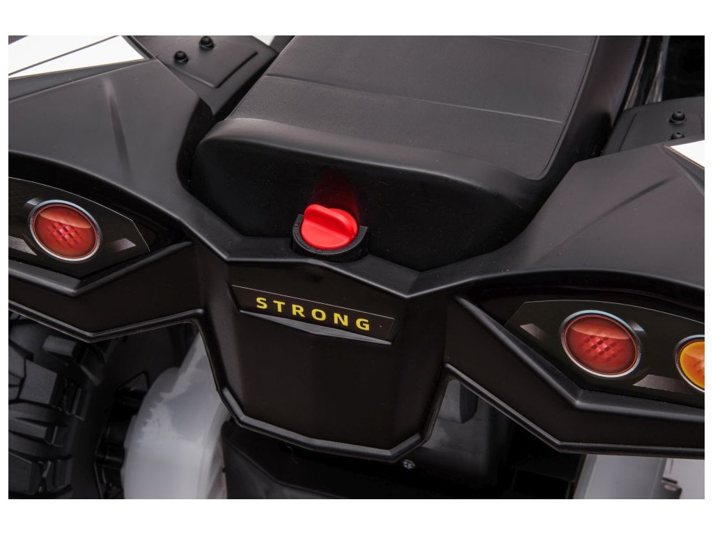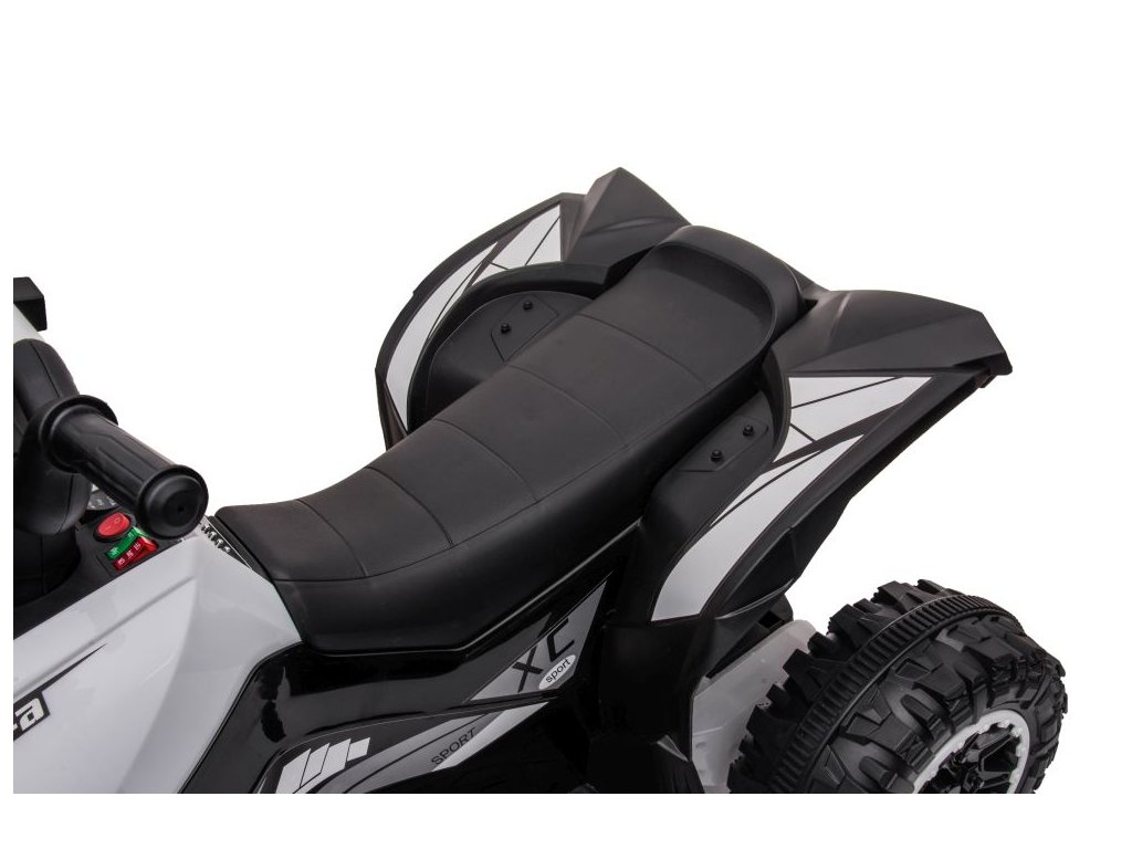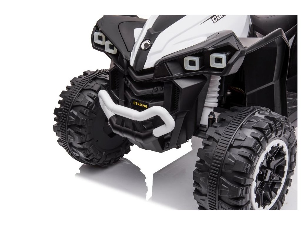 Otroški štirikolesnik na akumulator XC-sport 2x45W bel je odlična izbira tudi za zahtevnejše male voznike. Opremljen je z daljinskim upravljalnikom s varnostnim gumbom Stop, ki takoj ustavi vozilo in izklopi vse njegove funkcije. Pri zagonu zaslišite zvoke motorja, vožnjo pa si lahko popestrite z glasbo, ki jo predvajate prek bogato opremljenega glasbenega panela. Štirikolesnik ima dva motorja z močjo 45W in baterijo s kapaciteto 12V 7Ah.