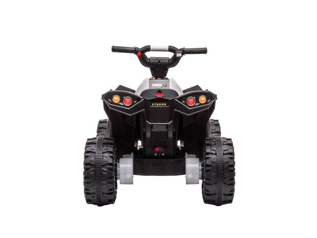 Štirikolesnik omogoča zmeren začetek vožnje, v teren se podate s hitrostjo 3-3,5 km/h, vendar lahko starši kadar koli posežejo v vožnjo s pomočjo daljinskega upravljalnika. Udobje zagotavljajo plastični sedež in plastična kolesa.