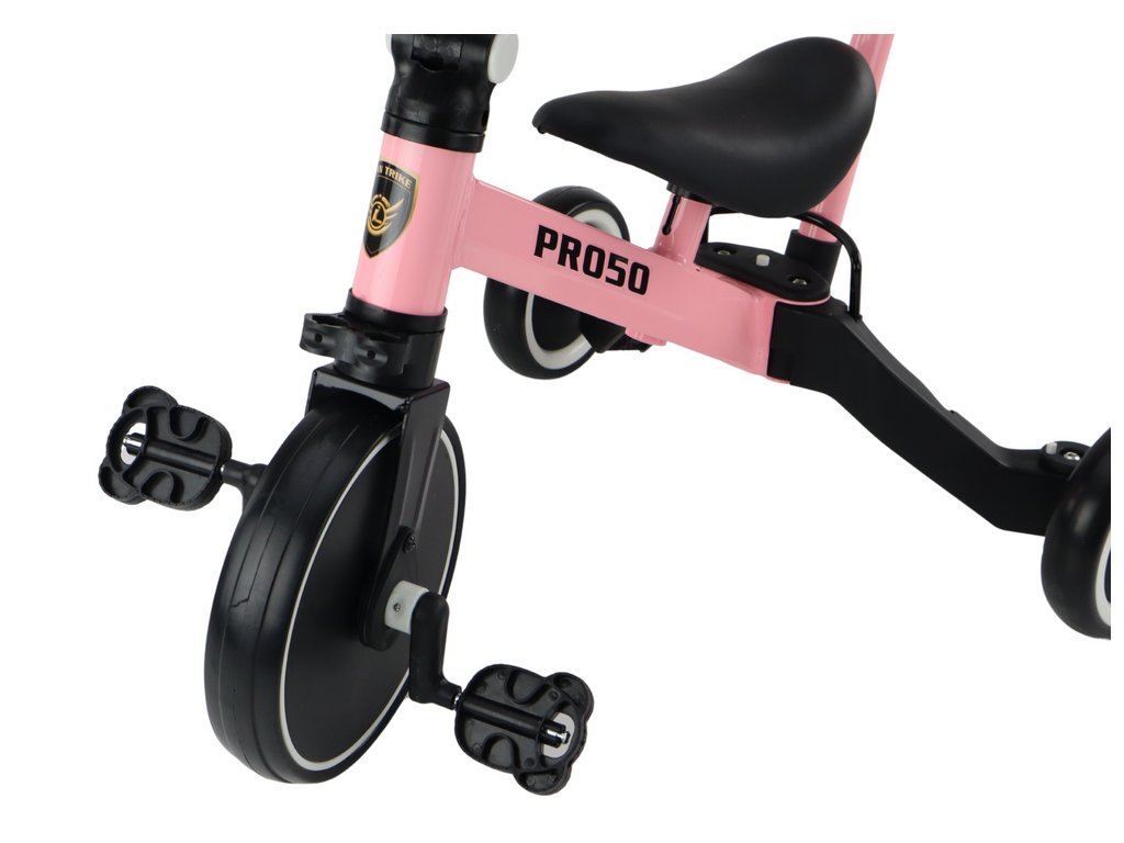 Tricikel PRO50 je večnamensko vozilo 2 v 1, zasnovano za otroke od 3. leta starosti. Zahvaljujoč možnosti hitre menjave funkcij - iz kolesa za umazanijo v kolo s pedali - se lahko vaš otrok nauči voziti s tempom, ki ustreza njegovim lastnim spretnostim in samozavesti.