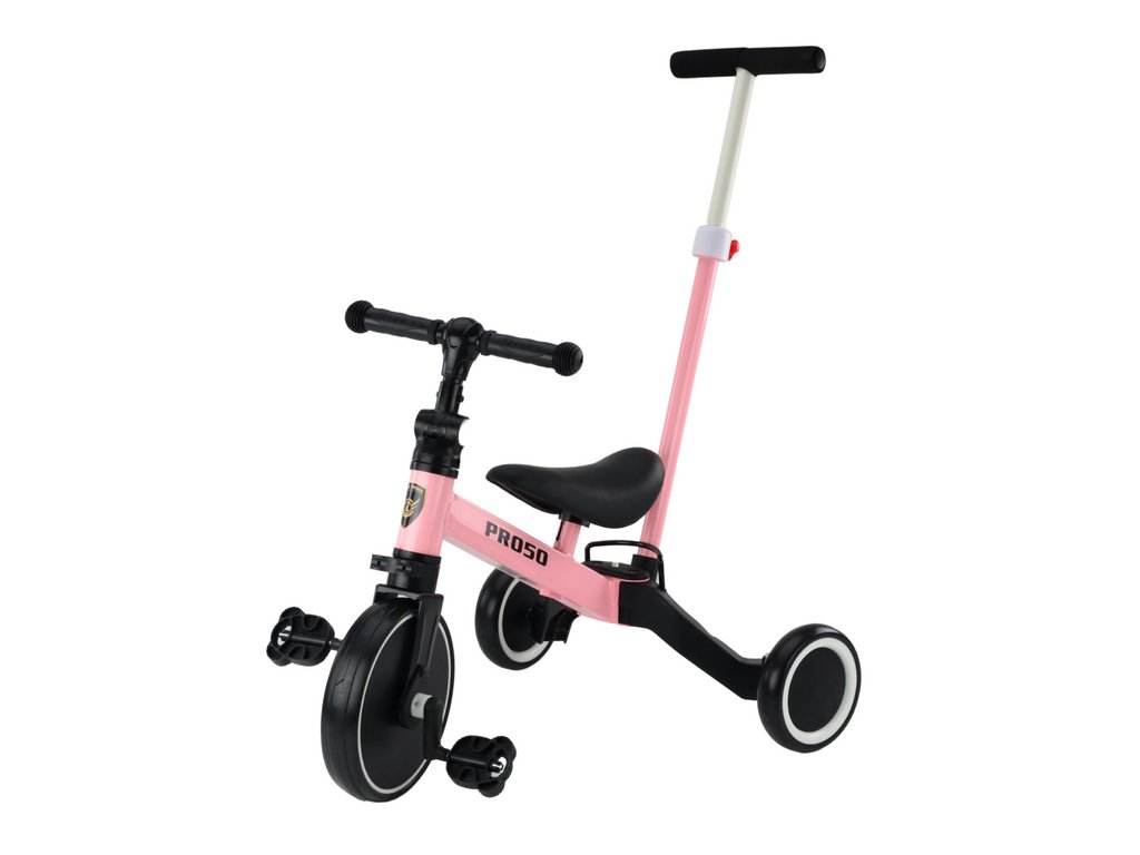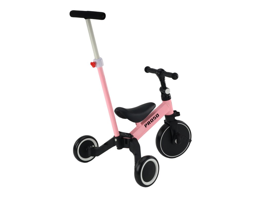 Otroški tricikel in poganjalec 2v1 PRO50 z vodilom roza barve