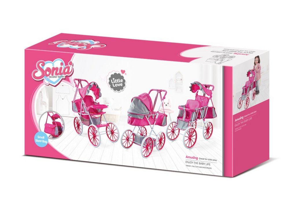 Roza otroški voziček je čudovita igrača, ki otroke vabi v svet skrbi in ustvarjalne igre. Njegova trdna kovinska konstrukcija zagotavlja vzdržljivost, kar omogoča dolgotrajno uporabo tudi pri intenzivni igri. Velika penasta kolesa zagotavljajo gladko vožnjo po različnih površinah, kar igri dodaja dodatno dimenzijo.