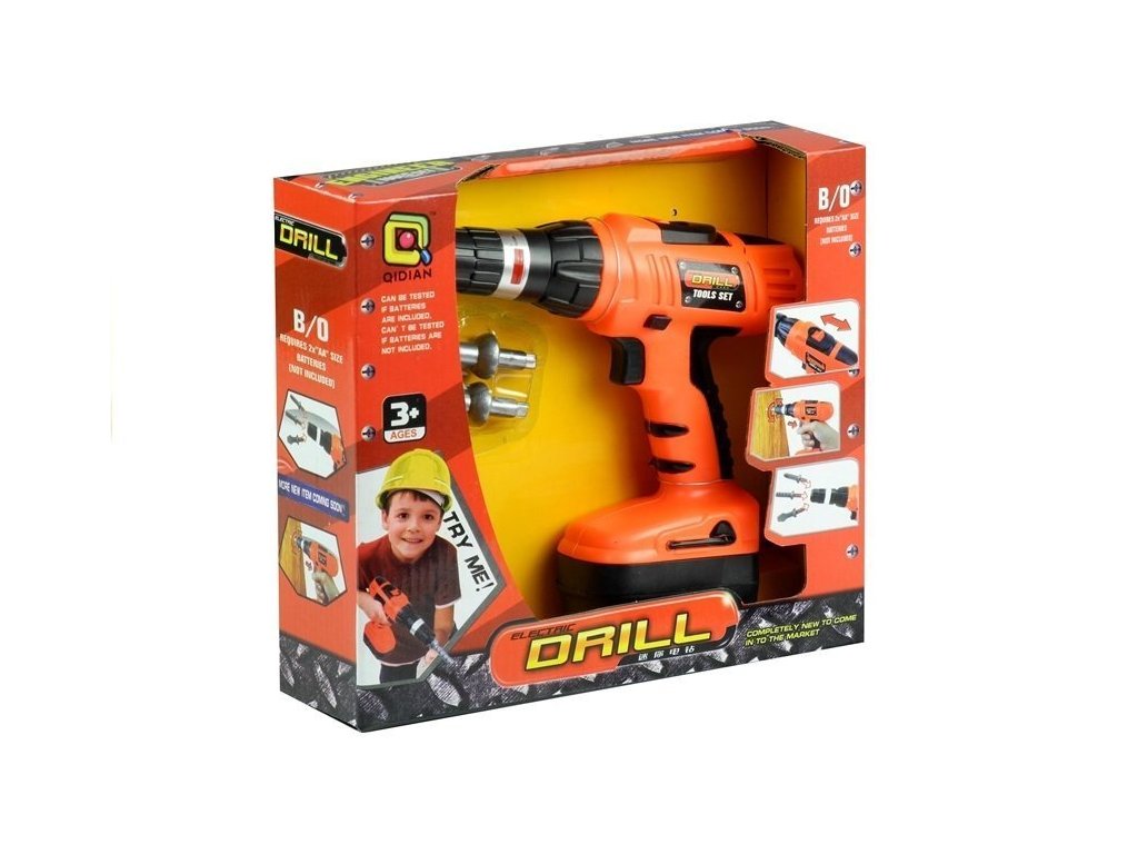 Otroški vrtalnik z vrati oranžen, ki izgleda in deluje kot pravi. Igračo lahko uporabljamo za vijačenje, izvijanje in odstranjevanje vijakov ter vrtanje. Otroci radi opazujejo svet okoli sebe, zato pogosto igrajo igre, ki posnemajo aktivnosti odraslih. Igračo pri igranju spremljajo realistično zvočni učinki vrtalnika.