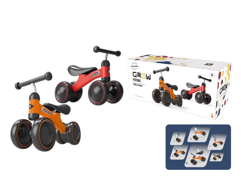Otroško kolo Grow Future je idealna izbira za prve vožnje malih raziskovalcev že od 12. meseca starosti. Zahvaljujoč štirim trdnim kolesom ponuja izjemno stabilnost in varnost, tako da se lahko vaš otrok uči usklajevati gibe in pridobivati samozavest pri vožnji brez tveganja prevrnitve. Sodoben dizajn in lahka konstrukcija zagotavljata udobno in varno uporabo doma in zunaj.
