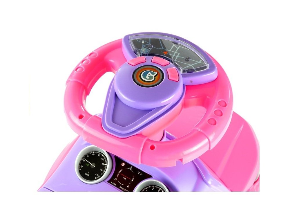 Velika prednost tega otroškega poganjalca je multimedijski volan in kazalniki hitrosti, ki se nahajajo tik pod njim. Interaktivni volan je opremljen z gumbi, ki aktivirajo prijetne zvoke, pa tudi pisane lučke. Pet vrst različnih zvokov bo vašemu malčku v avtomobilu dalo občutek, da je pravi voznik.