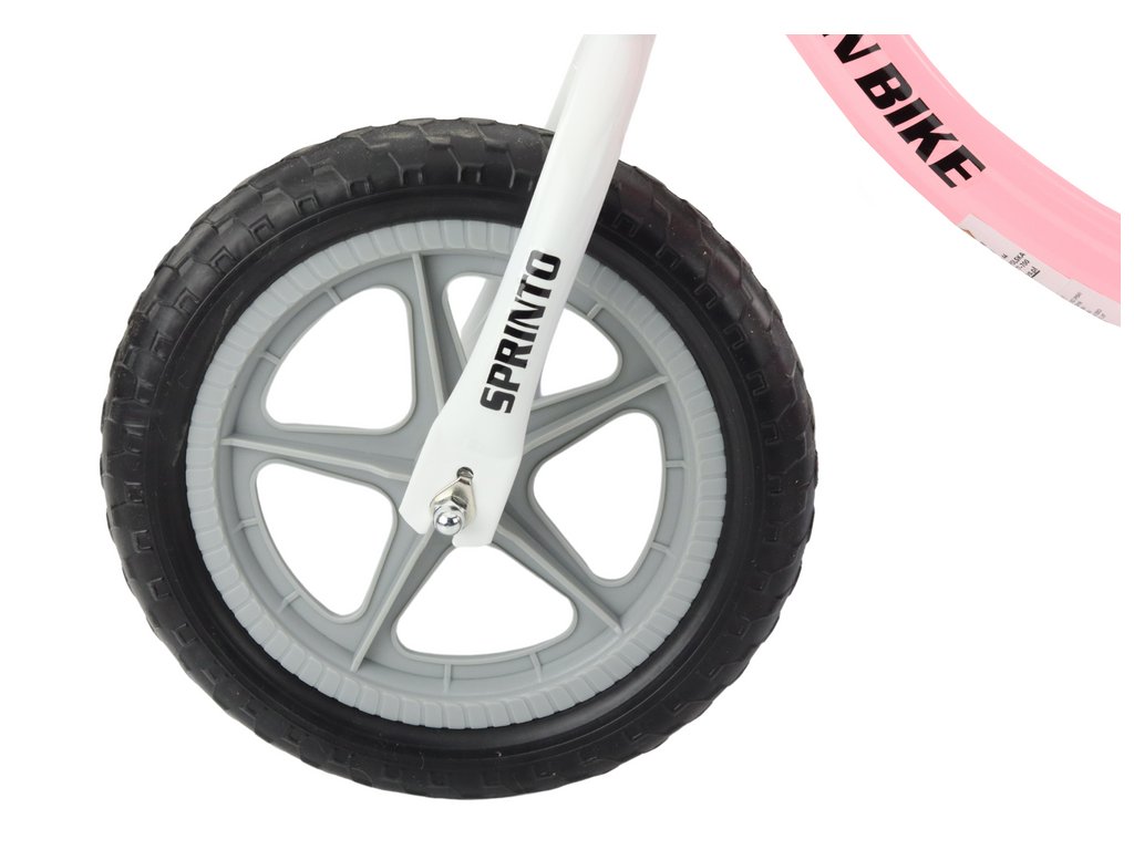 Poganjalec SPRINTO v nežno roza odtenku je odlična izbira za otroke od 2 do 5 let, ki se šele spoznavajo s svetom ravnotežja in gibanja. Lahka jeklena konstrukcija in tiha kolesa iz EVA pene omogočajo udobno in varno vožnjo tako v zaprtih prostorih kot na prostem. Nastavljiva višina sedeža in krmila zagotavlja, da bo poganjalec rasel z otrokom in podpiral njegov motorični razvoj ter samozavest pri gibanju. Preprosta zasnova brez nepotrebnih elementov pušča prostor za naravno igro in koncentracijo na vožnjo.