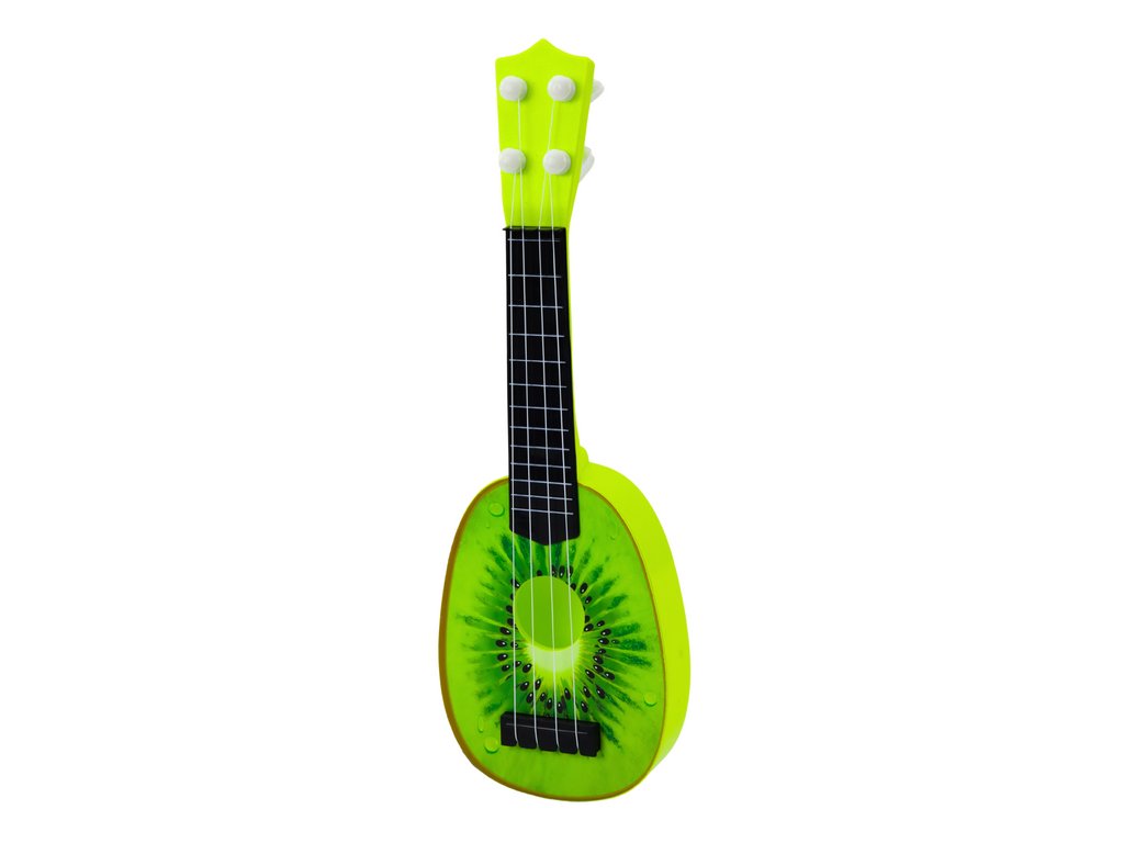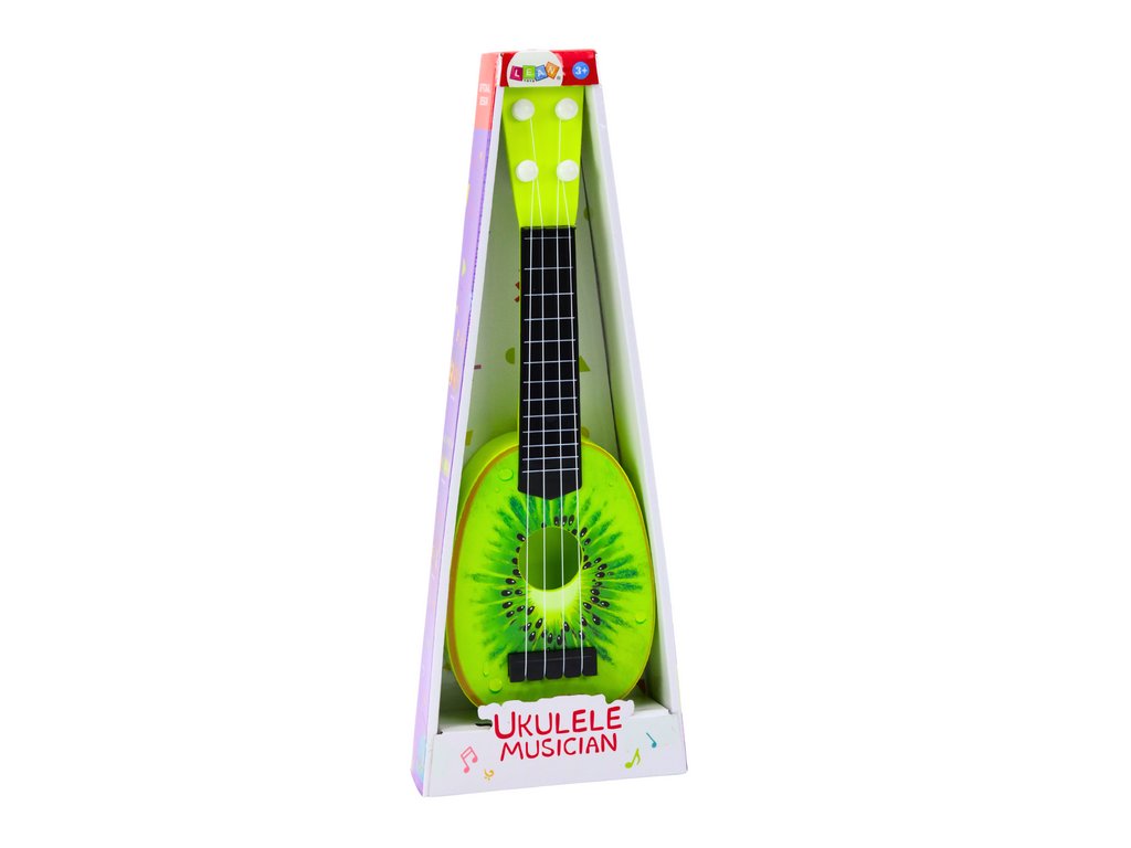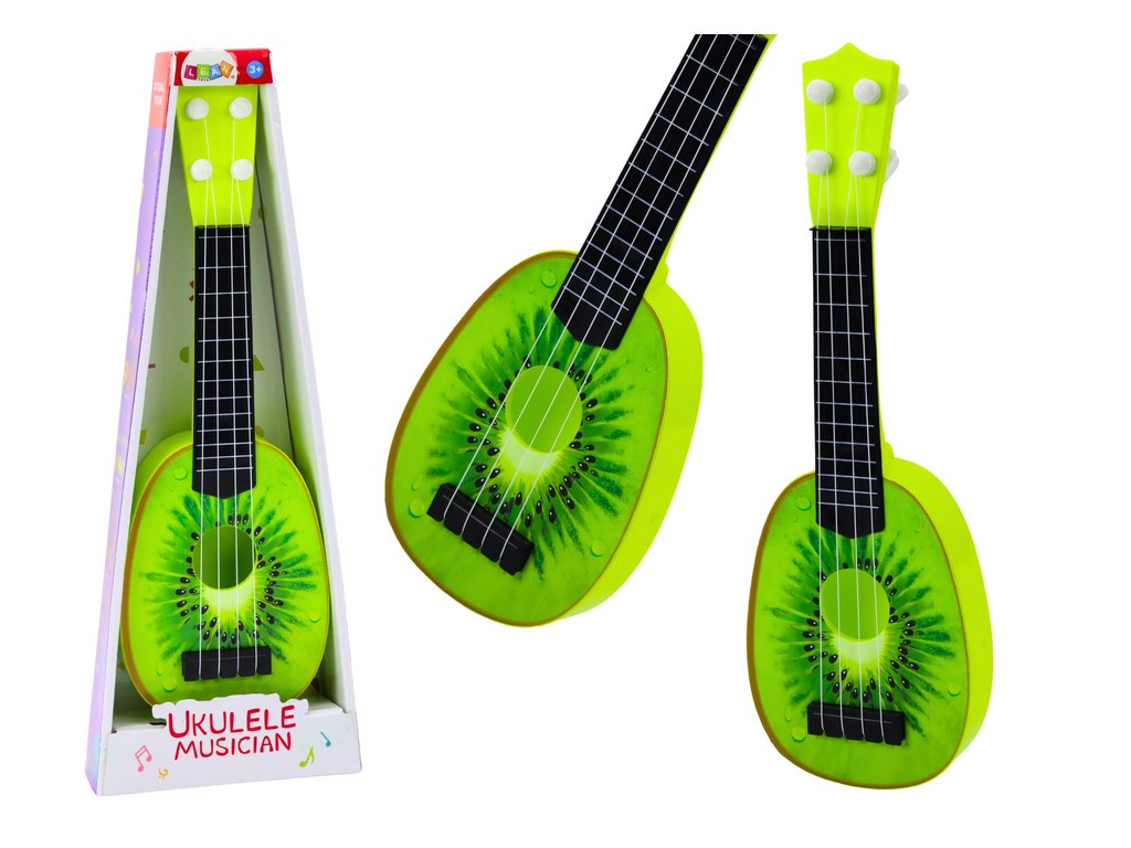 Otroško ukulele kiwi 15" je odlična izbira za male glasbenike, ki želijo raziskovati svet glasbe. Ta lahek inštrument s štirimi najlonskimi strunami je zasnovan tako, da je enostaven za upravljanje in prijeten za male roke. Izdelan je iz trpežne in varne plastike. Privlačen dizajn v obliki limete zagotavlja igriv videz, ki otroke navduši in motivira za nadaljnji glasbeni razvoj.