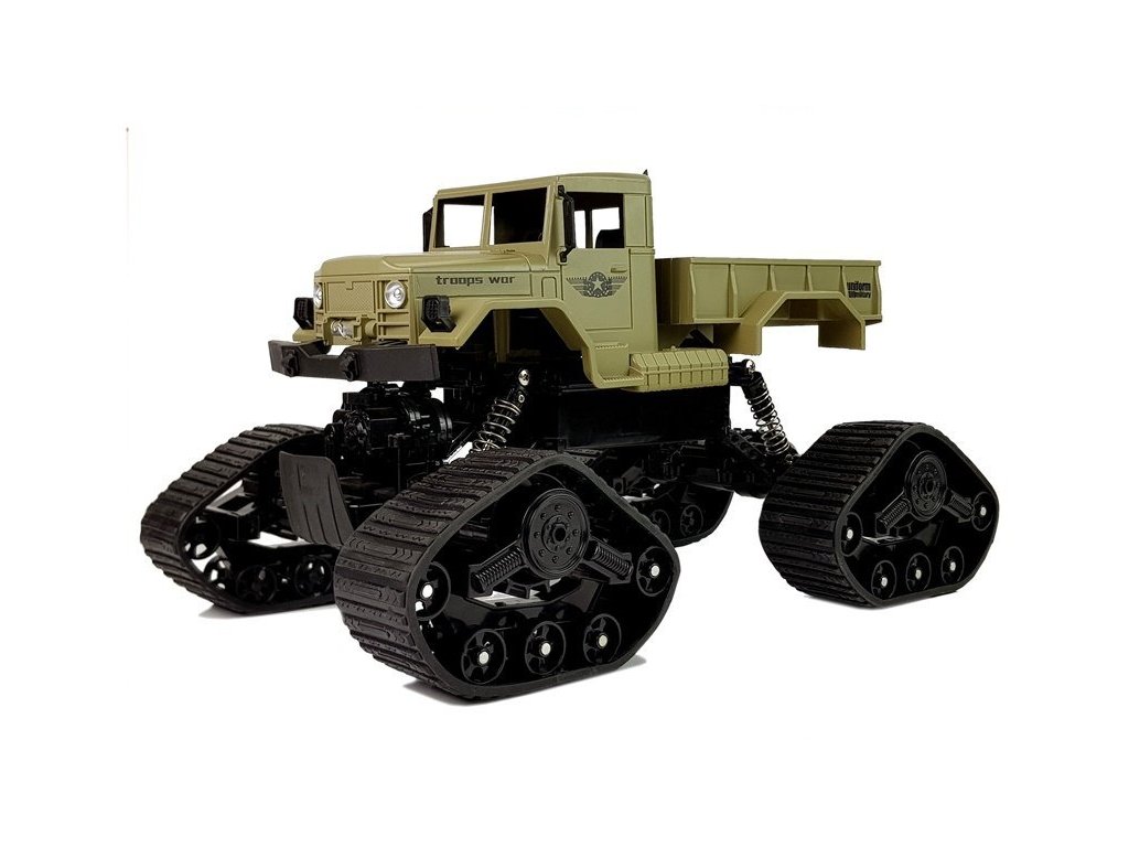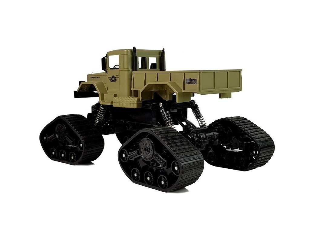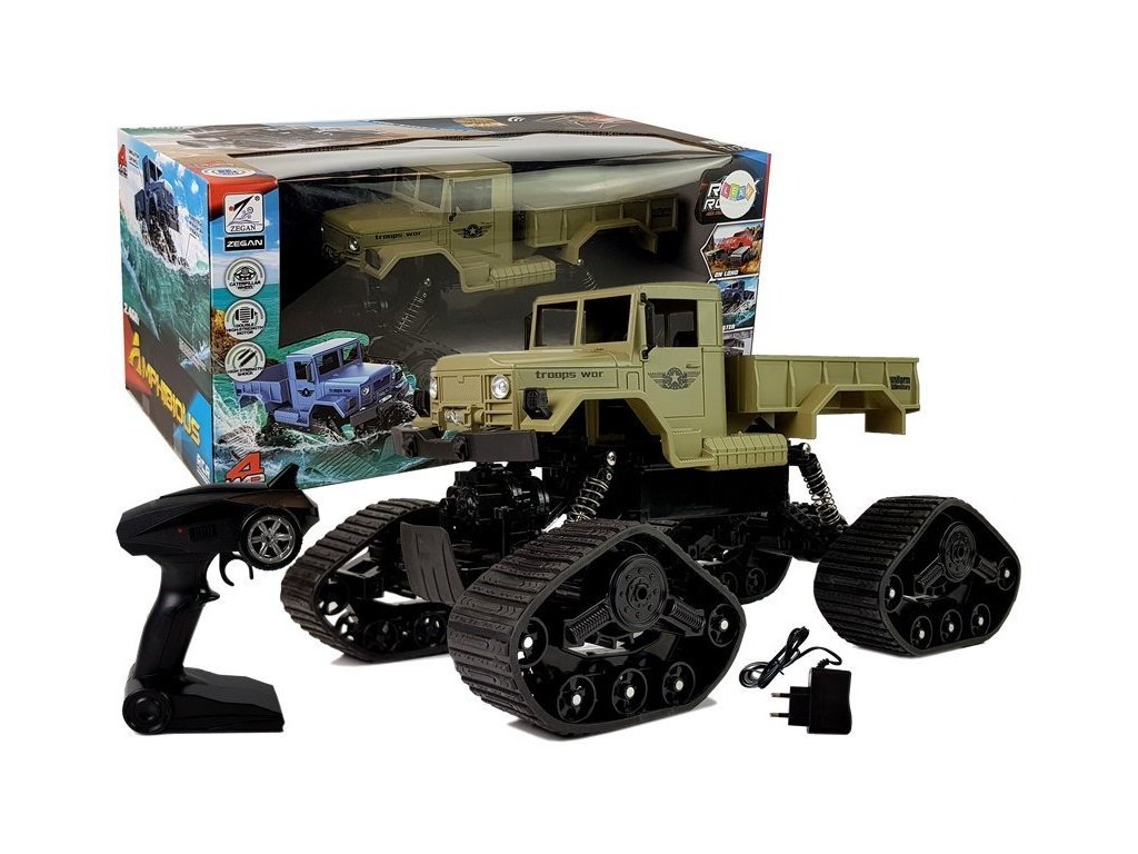 Pásovni avtomobilček Pickup na daljinsko vodenje R/C 1:12 zelen se prilagodi vsem pogojem, kar zagotavlja nepozabno zabavo. Veliki pasovi povečajo oprijem vozila na različnih vrstah podlage. Vozilo je izdelano iz trpežnih materialov, ki zagotavljajo odpornost proti udarcem in padcem. Komplet vključuje priročen daljinski upravljalnik, s katerim lahko maksimalno uživate v vožnji. Model vsebuje realističen notranji prostor vozila in možnost prevoza tovora ter je opremljen z dvema motorjema.
