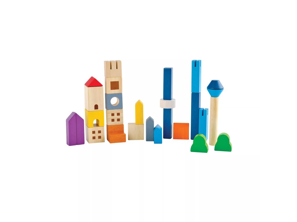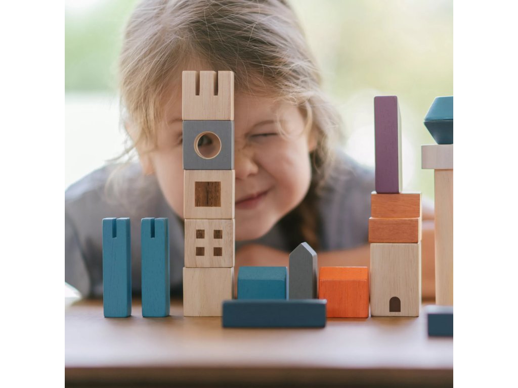 Zgradite barvito mesto po lastni domišljiji. Gradbeni komplet spodbuja domišljijsko igro, fino motoriko, koncentracijo in koordinacijo otrok.