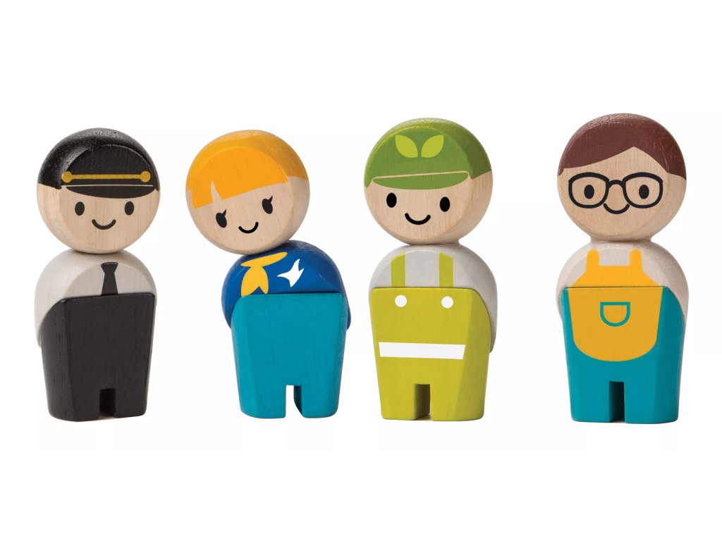 Komplet vsebuje štiri lesene figure, ki predstavljajo člane servisne posadke. Figure so izdelane tako, da so odporne na običajno otroško uporabo in varne glede uporabljenih materialov.