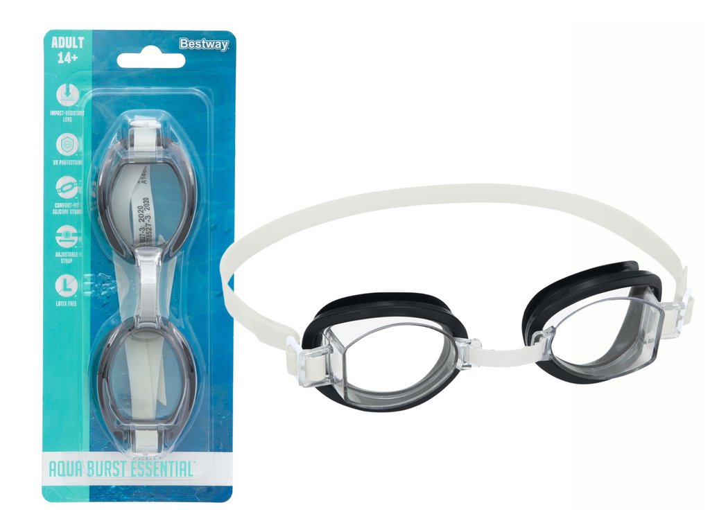 Plavalna očala, ki so idealna za osebe starejše od 14 let. Polikarbonatna leča je odporna na udarce in ima zaščitni sloj proti UV žarkom, kar zagotavlja popolno zaščito oči med plavanjem.
