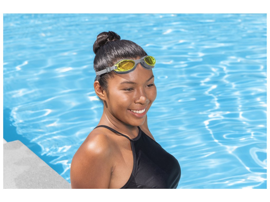 Privoščite si popolne sive plavalne očala, udobne in primerne za osebe starejše od 14 let. Polikarbonatne leče z UV filtrom in premazom proti megljenju. Ne vsebujejo lateksa, idealne za alergike.