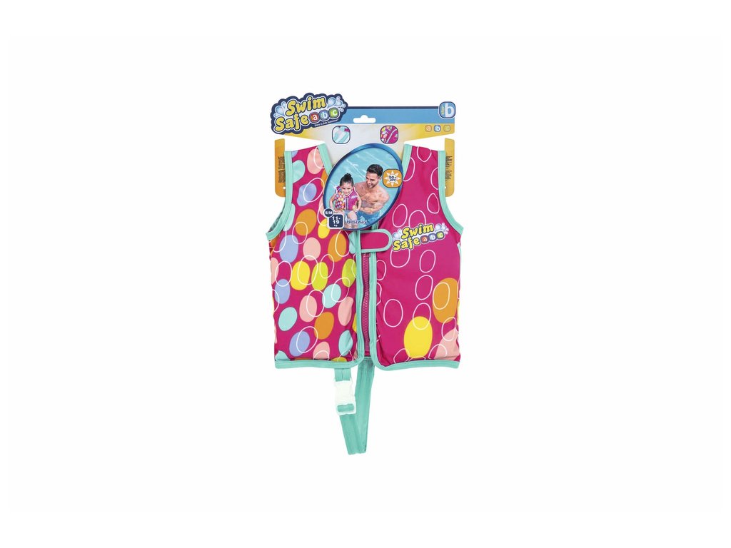Jopič ima zadrgo in sponko, da otrok ne pade ven, dolžina pasu je nastavljiva in se popolnoma prilega otroku. Jopič je izdelan iz udobnega materiala in vgrajenih penastih vložkov ter nudi otroku uravnotežen vzgon v vodi. Barvit dizajn zagotavlja 50+ UPF zaščito pred soncem, da prepreči bledenje barv.