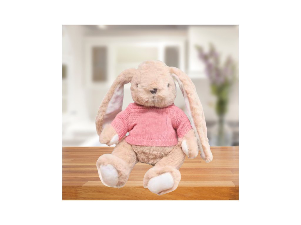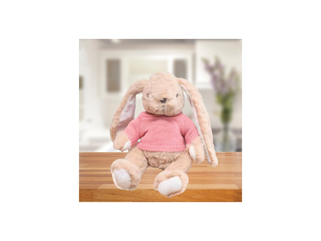 Plyšák má kompaktní, zaoblený tvar a lehkou konstrukci, což z něj dělá ideálního společníka pro každodenní hraní, zdřímnutí i společné cestování. Růžový svetr, který má zajíček na sobě, mu dodává šarm a odlišuje ho od ostatních plyšáků – díky němu hračka vypadá stylově a esteticky a je perfektním dárkem pro děti různého věku.