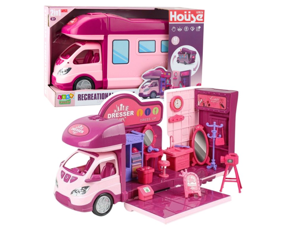 Sanjski avtodom je izjemna igrača, ki otrokom omogoča, da se potopijo v svet potovanj, pustolovščin in ustvarjalne igre. Velik rožnato-vijoličen avto se razprostira v bogato opremljeno hišico za punčke, ki ponuja odlične možnosti za ustvarjanje lastnih zgodb in igralnih scenarijev.