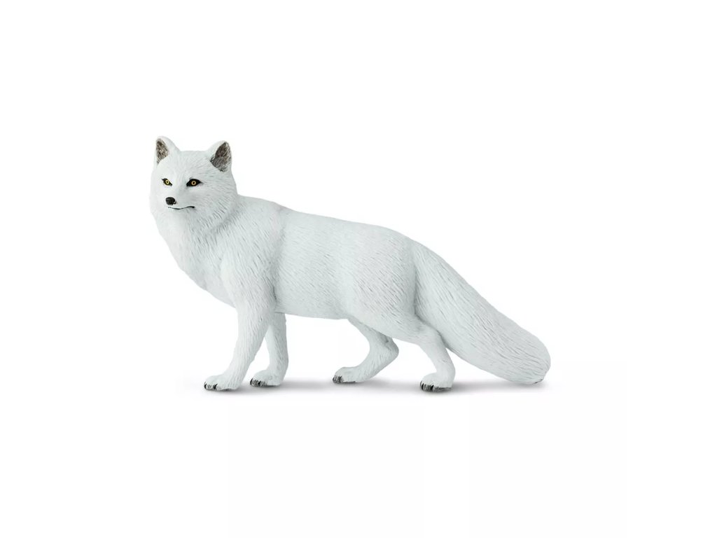 Realistična figurica polarne lisice, ki odraža osnovne značilnosti te vrste in je primerna kot didaktični pripomoček in igrača.