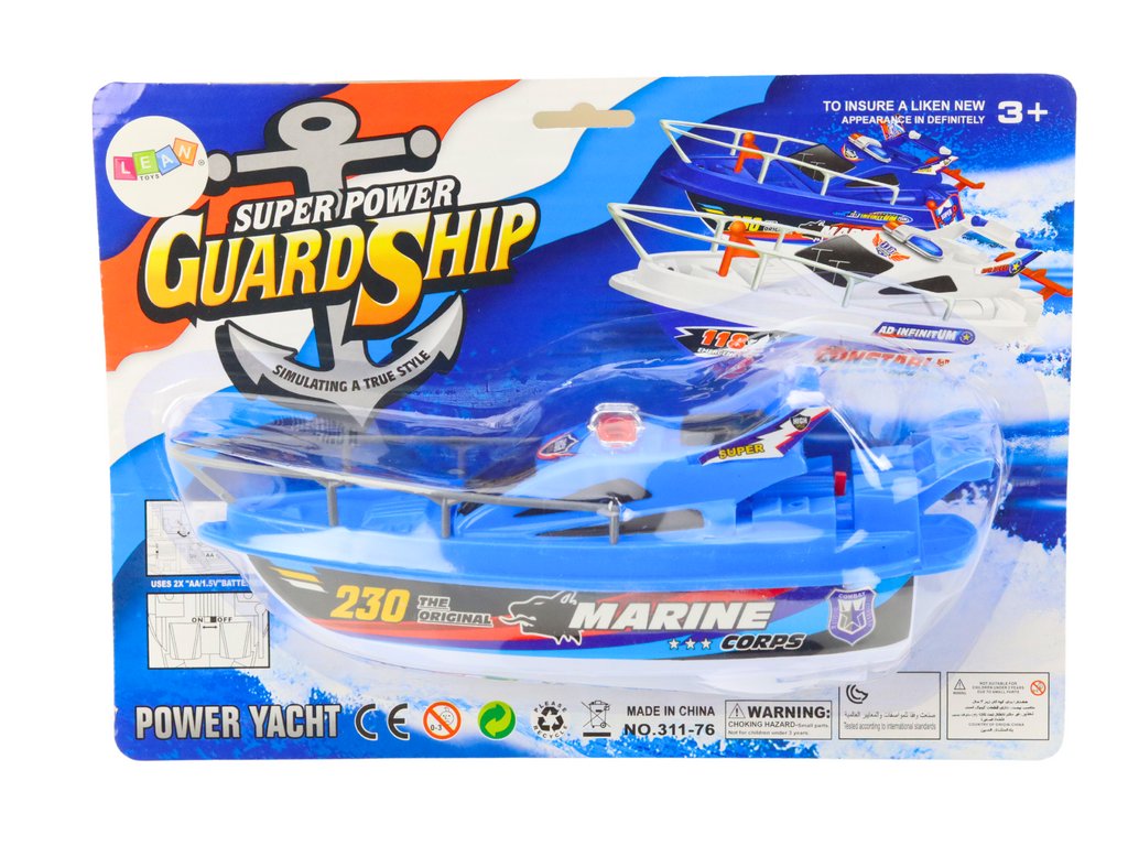 Ta čoln je opremljen z baterijskim pogonom, zaradi česar se premika po vodi kot pravi policijski patruljni čoln. Dovolj je, da ga položite na vodno površino in ga vklopite, nato pa se čoln začne premikati, kar otrokom prinaša veliko veselja in navdiha za ustvarjalne igre. Zahvaljujoč enostavnemu nadzornemu mehanizmu lahko otroci sami zaženejo čoln in usmerjajo njegovo gibanje, kar naredi igro interaktivnejšo in bolj privlačno.