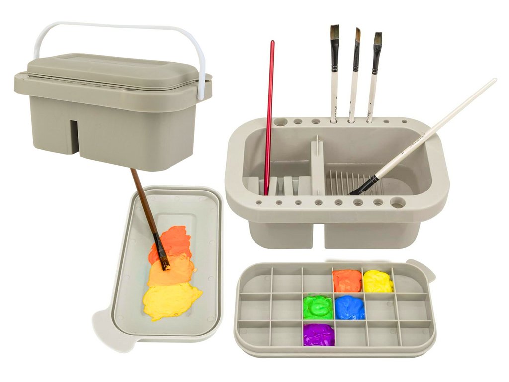 Posoda za umivanje in shranjevanje čopičev z organizatorjem