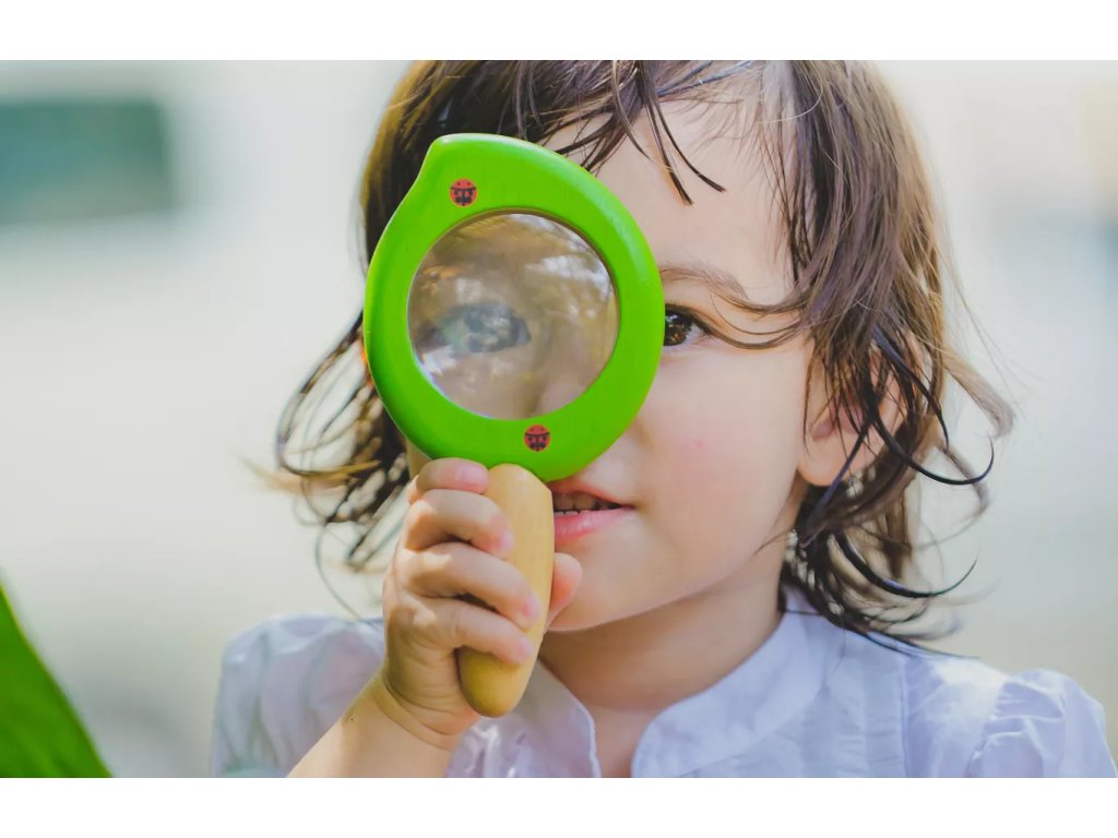 Odkrijte majhne živali in rastline od blizu. Leseno povečevalno steklo PlanToys olajša raziskovanje doma in na prostem, zaradi kompaktne velikosti pa se dobro prilega otroški roki.