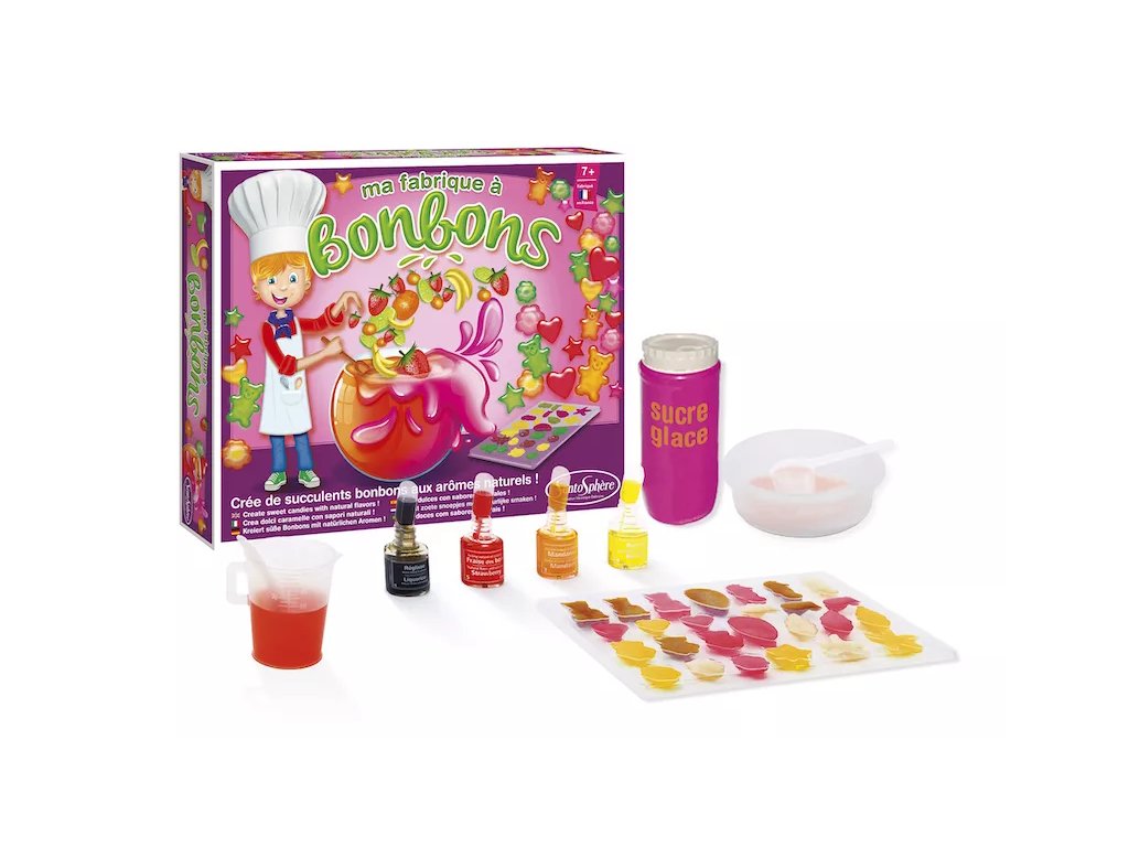 Ta »mini laboratorij« uporablja govejo želatino in naravne arome brez konzervansov. Otrokom in odraslim omogoča pripravo izvirnih sladic z izrazitim okusom in pisanim videzom. Komplet je zasnovan kot didaktičen in kreativen projekt, primeren za družinsko uporabo.