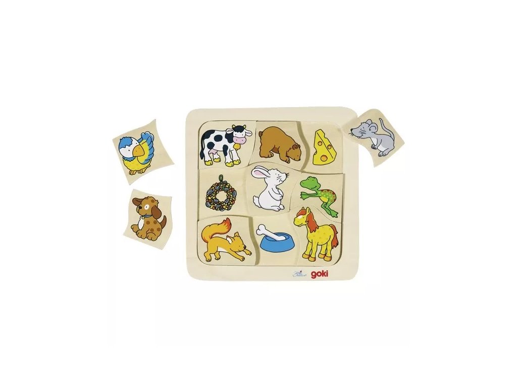 Sestavljanka je sestavljena iz 9 delov, ki so nameščeni na trdni leseni plošči. Vsaka žival pod seboj skriva, kaj ima najraje, kar spodbuja otroke k odkrivanju in iskanju.