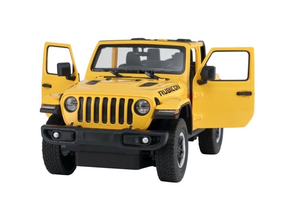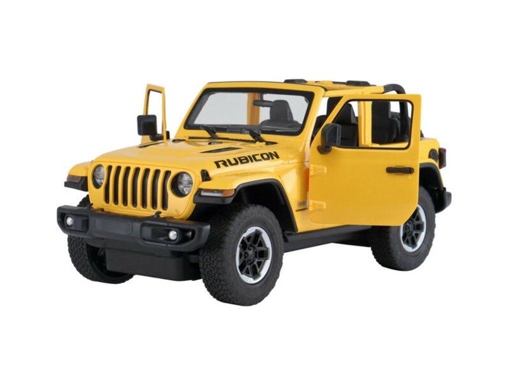 Rumeni avto na daljinsko upravljanje Jeep Wrangler Rubicon je avtentična replika v merilu 1:14. Avto se z daljinskim upravljalnikom premika naprej, nazaj, obrača in ustavlja. Zahvaljujoč svojemu terenskemu značaju se lahko uporablja tako v zaprtih prostorih kot na prostem. Luči na vozilu se prižgejo, ko je avto prižgan in v gibanju. Vrata vozila se lahko odprejo ročno, notranjost in podvozje sta zasnovana zelo skrbno, da ustrezata originalnemu vozilu. Jeep na daljinsko vodenje se upravlja z radijskim krmilnikom in doseže hitrost 7 kilometrov na uro. Krmilnik ima domet približno nekaj deset metrov in ga je za razliko od infrardečih krmilnikov mogoče brez težav uporabljati na prostem pri polni sončni svetlobi.