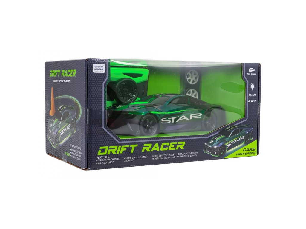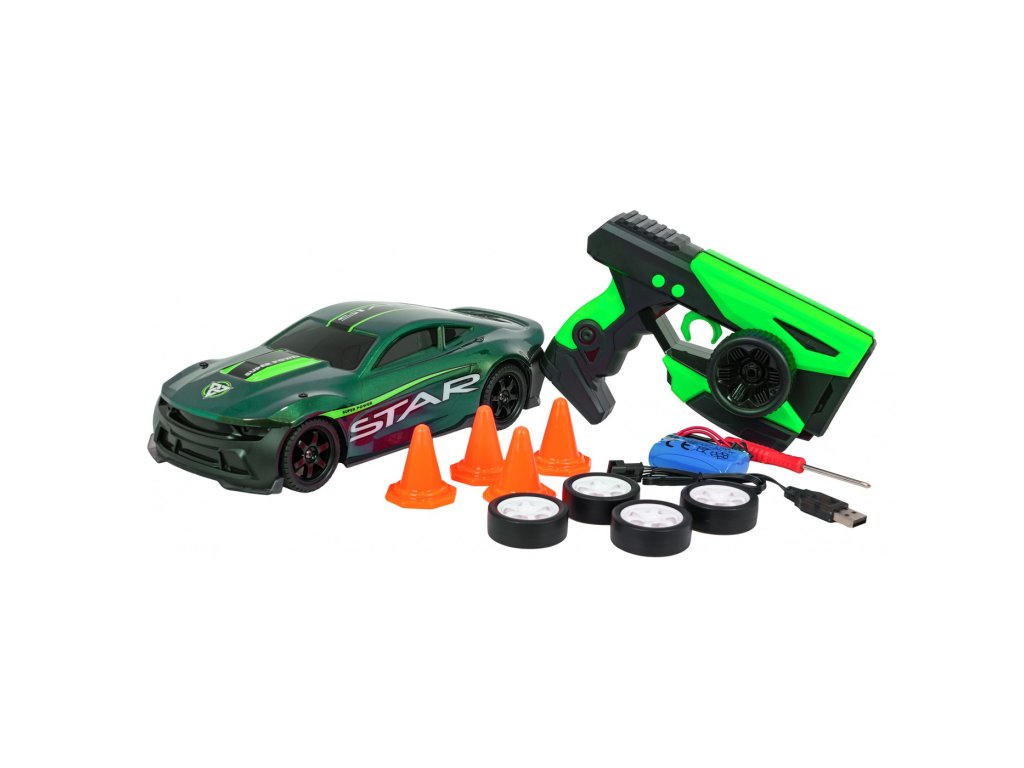Star daljinsko vodeno vozilo za otroke od šestega leta starosti. Vozilo je izdelano iz najkakovostnejših materialov, odpornih na poškodbe. Ima gumijaste pnevmatike z dobrim oprijemom na površino in zamenljiva kolesa za driftanje. Upravlja se s pomočjo daljinskega upravljalnika v obliki pištole. Vozilo ima osvetlitev spredaj in na spodnji strani. Pri hitrosti od 0 do 12 km/h sveti zeleno, od 0 do 16 km/h modro in med 0 in 20 km/h rdeče. Vozilo napaja akumulator tipa 7,4 V (priložen), daljinski upravljalnik pa baterije tipa 2 x AA 1,5 V (niso priložene).