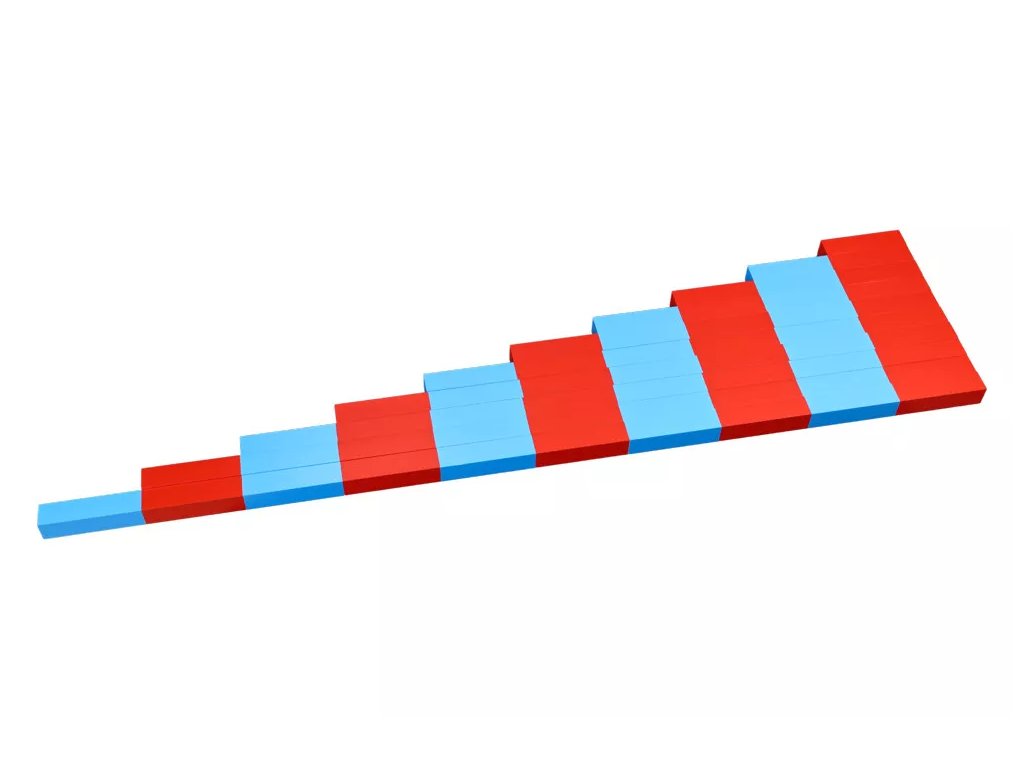 Pripomoček za seznanitev otroka s količino in poimenovanjem števil od 1 do 10. Komplet desetih rdeče-modrih palic omogoča taktilno in vizualno doživljanje količine ter primerjanje dolžin.