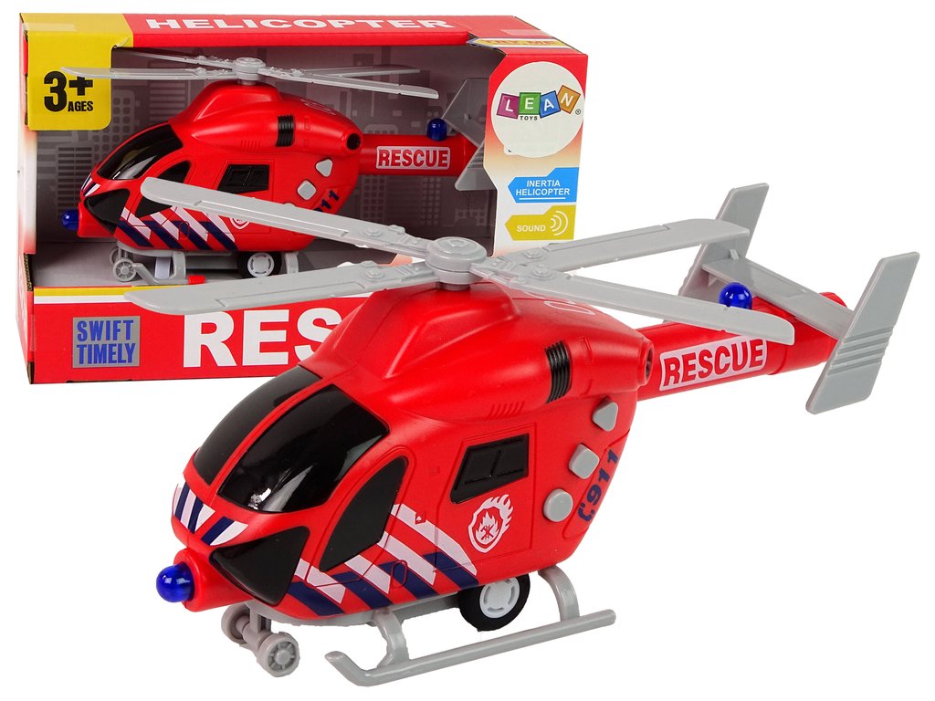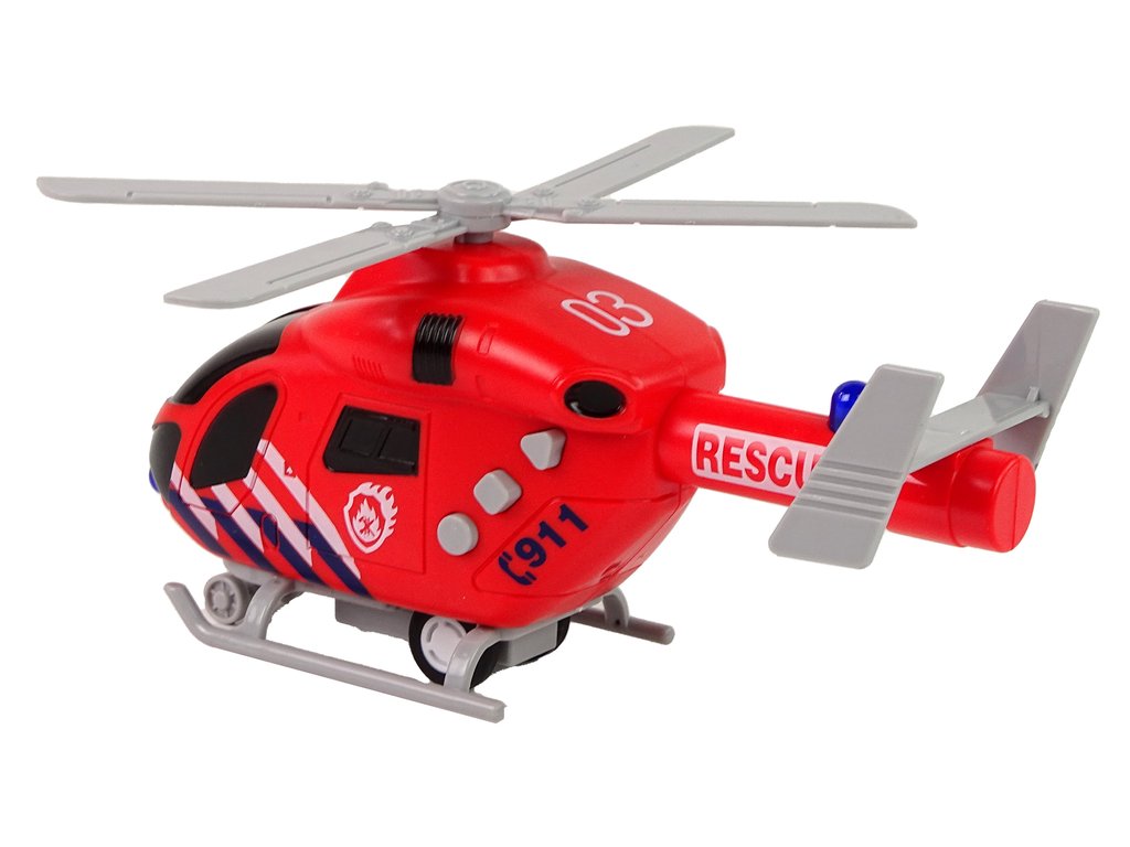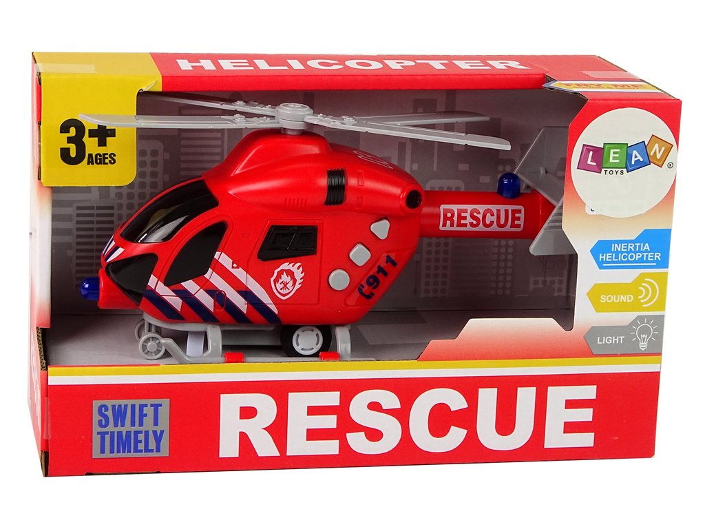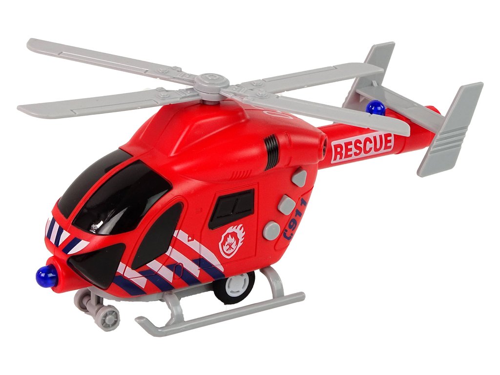 Rdeči gasilsko reševalni helikopter z zvoki in lučkami rotorja