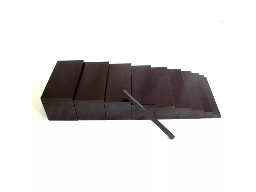 Senzorični Montessori pripomoček vsebuje deset rjavih prizem iz trdega lesa. Prizme imajo enako dolžino 20 cm, razlikujejo se po širini in višini (najmanjša 1×1×20 cm, največja 10×10×20 cm). Pripomoček razvija vizualno in mišično zaznavanje dimenzije ter pripravlja otroka na poznejše matematične pojme.
