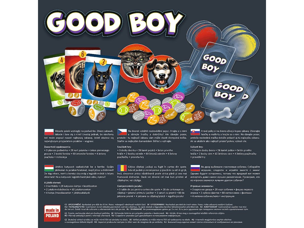 Hru ztěžuje neposlušná kočka, která rozptyluje psy a může vám zkřížit plány. Rodinná desková hra plná nečekaných zvratů je určena pro 2–4 hráče ve věku od 6 let. Průměrná délka hry je 30–60 minut. Ideální dárek pro každého milovníka psů!